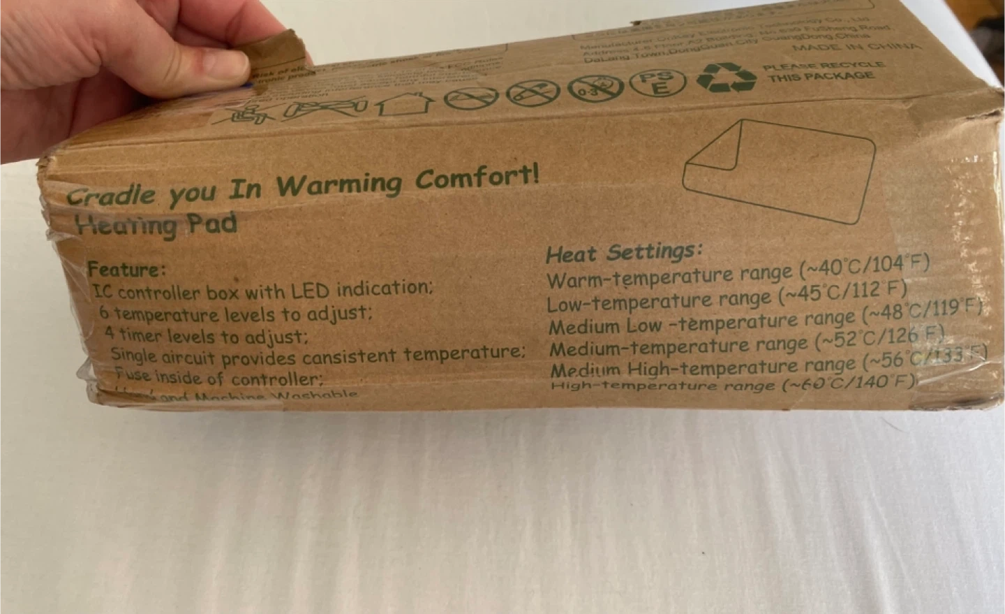 36Cozy up with this warming comfort heating pad! It comes with an IC controller box with LED indicators and 6 temperature levels to adjust. It also has 4 timer levels for your convenience. The box is included!