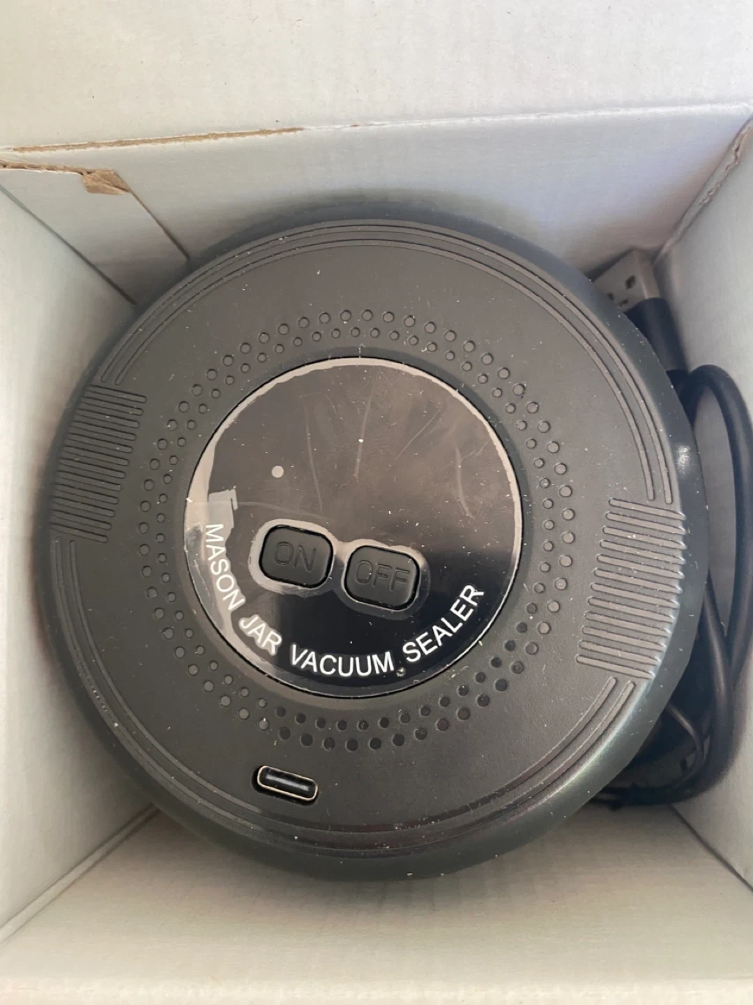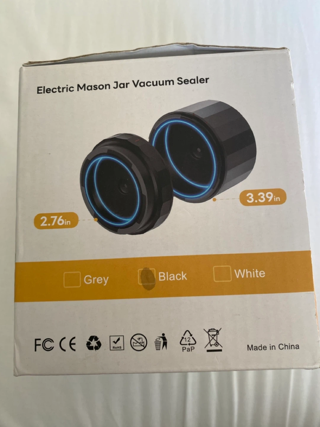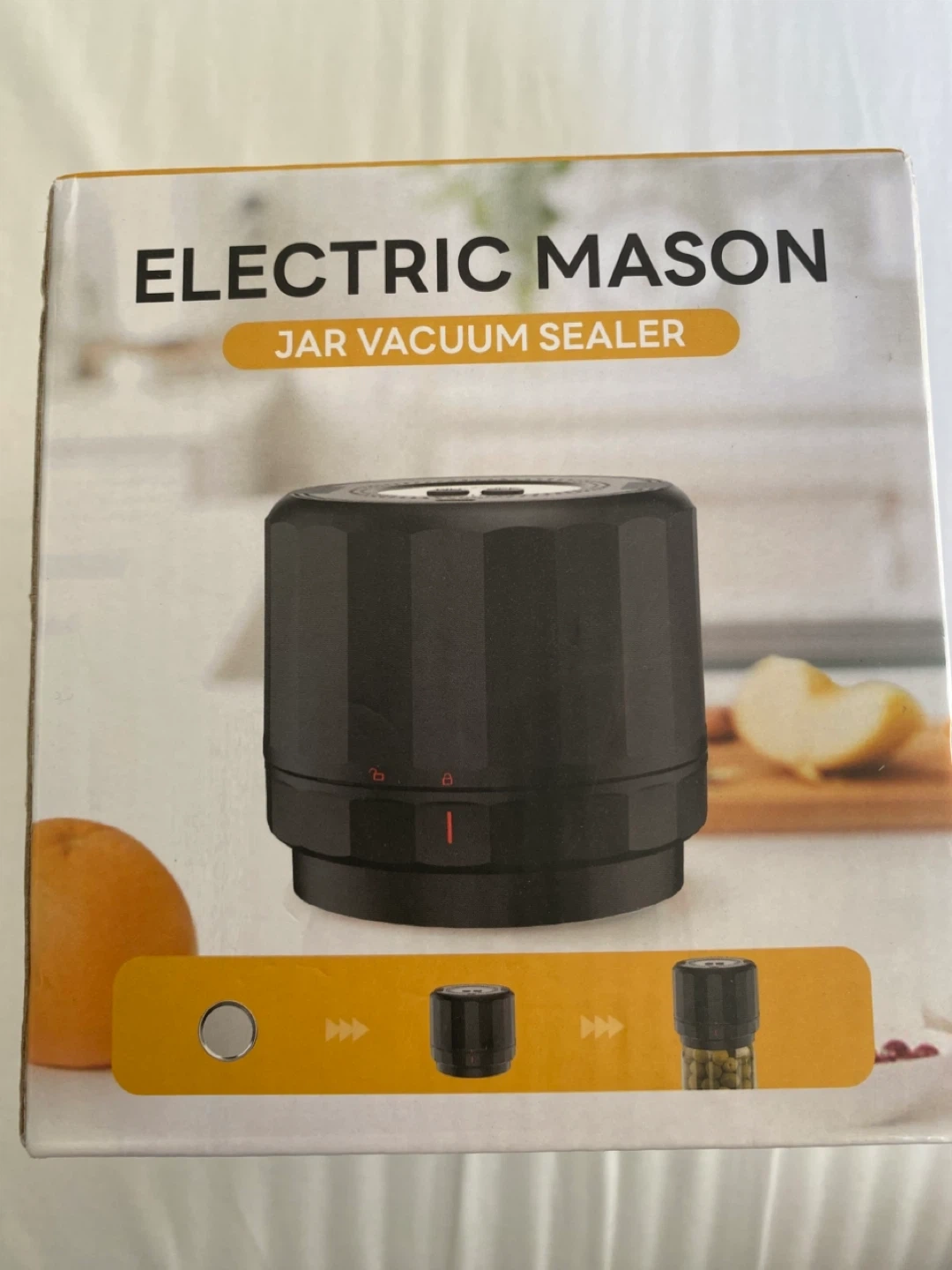 36Selling a brand new Electric Mason Jar Vacuum Sealer in black! It comes in the original box and is ready to help you keep your stored goods fresh. It features: - Keystroke operation - LED display - Type-C charging port Dimensions are approximately 2.76 inches and 3.39 inches.