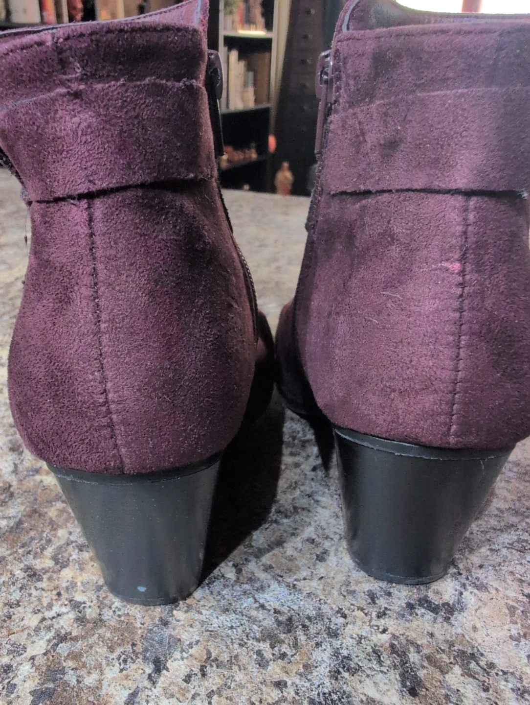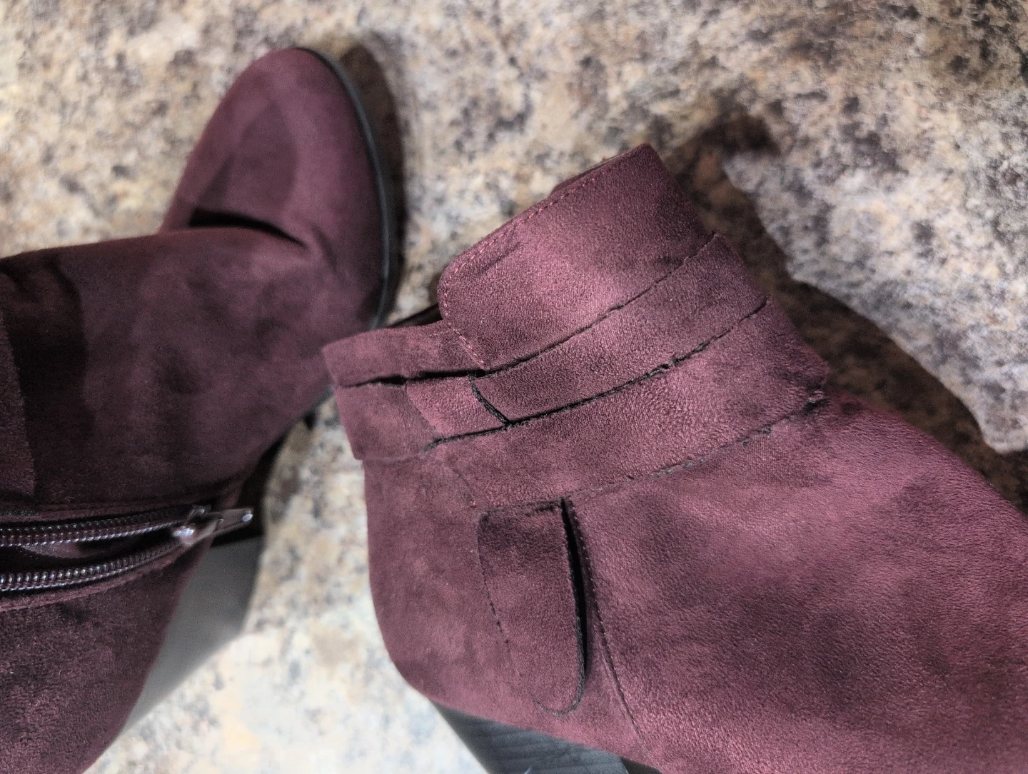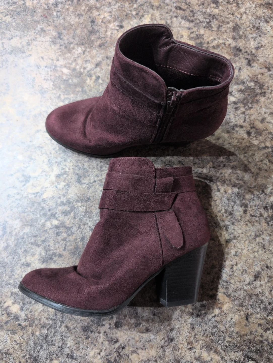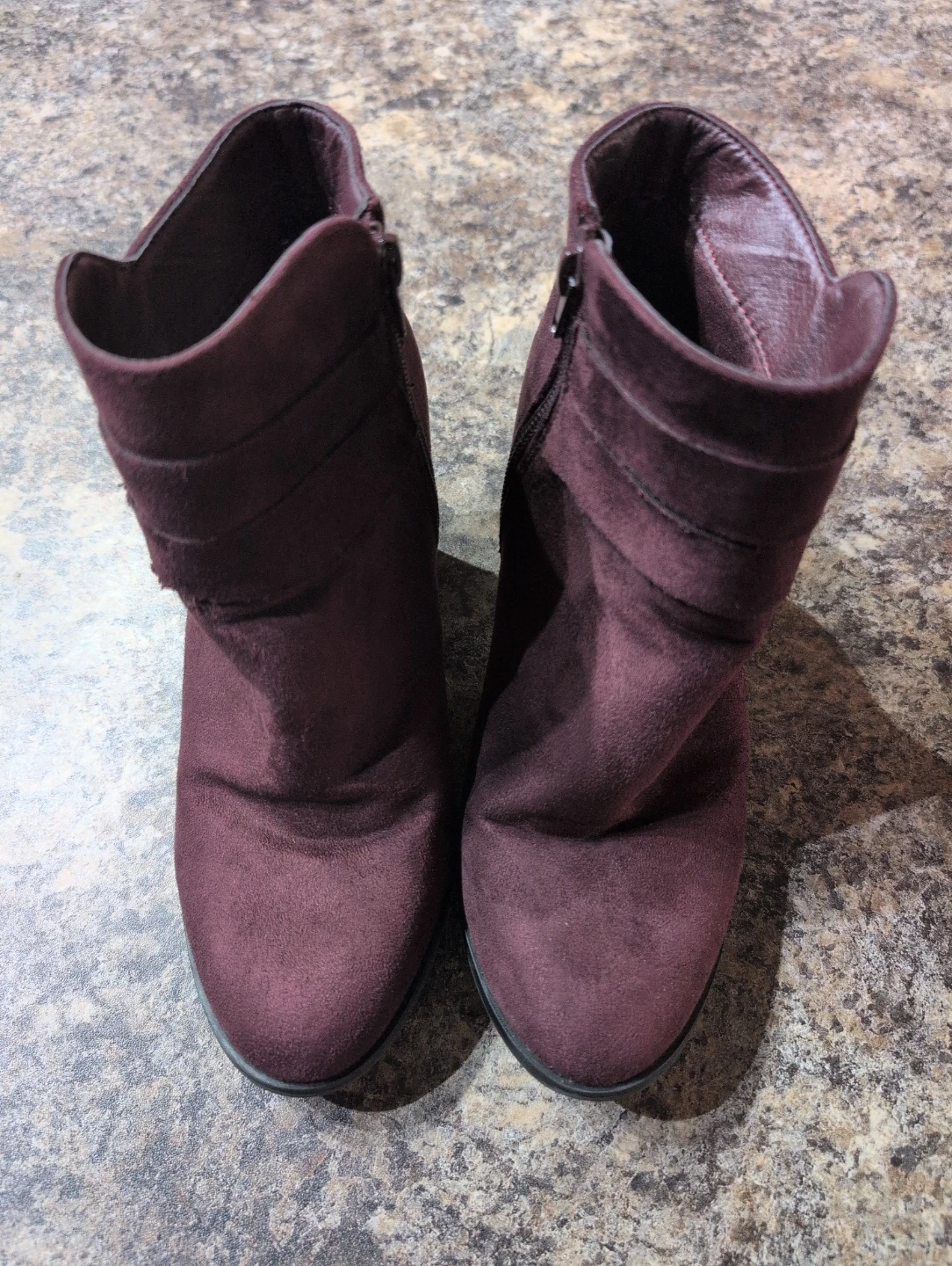 Selling a pair of George brand ankle boots in a lovely burgundy colour! They're a women's size 6 and feature a stylish design with a side zipper. Perfect for adding a touch of flair to any outfit!