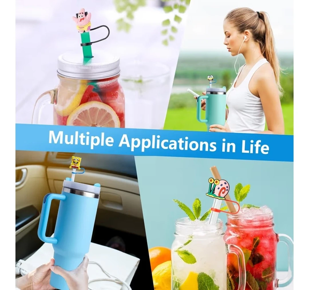 26Brand new set of Spongebob straw covers! These cute 10mm straw caps are designed for straws with a diameter of about 9-10mm. They come in a variety of fun Spongebob characters. Perfect for adding a bit of fun to your drinks!