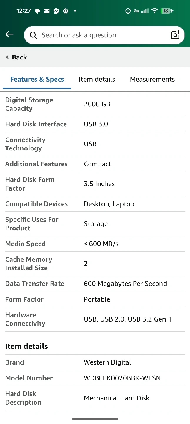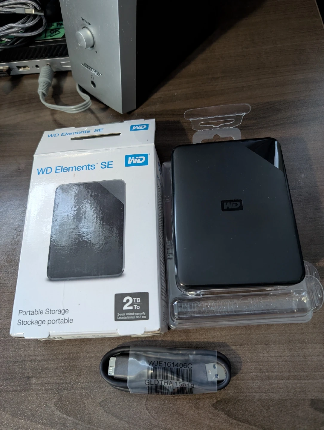 Selling a brand new WD Elements SE 2TB portable external hard drive! It's still in its original packaging and comes with all components, including the USB cable. The box is included as well. This drive is perfect for anyone needing extra storage on the go.