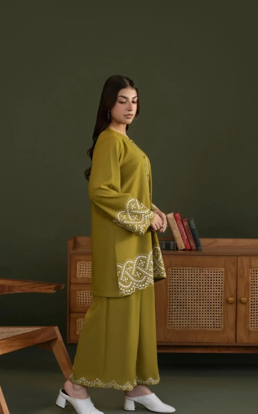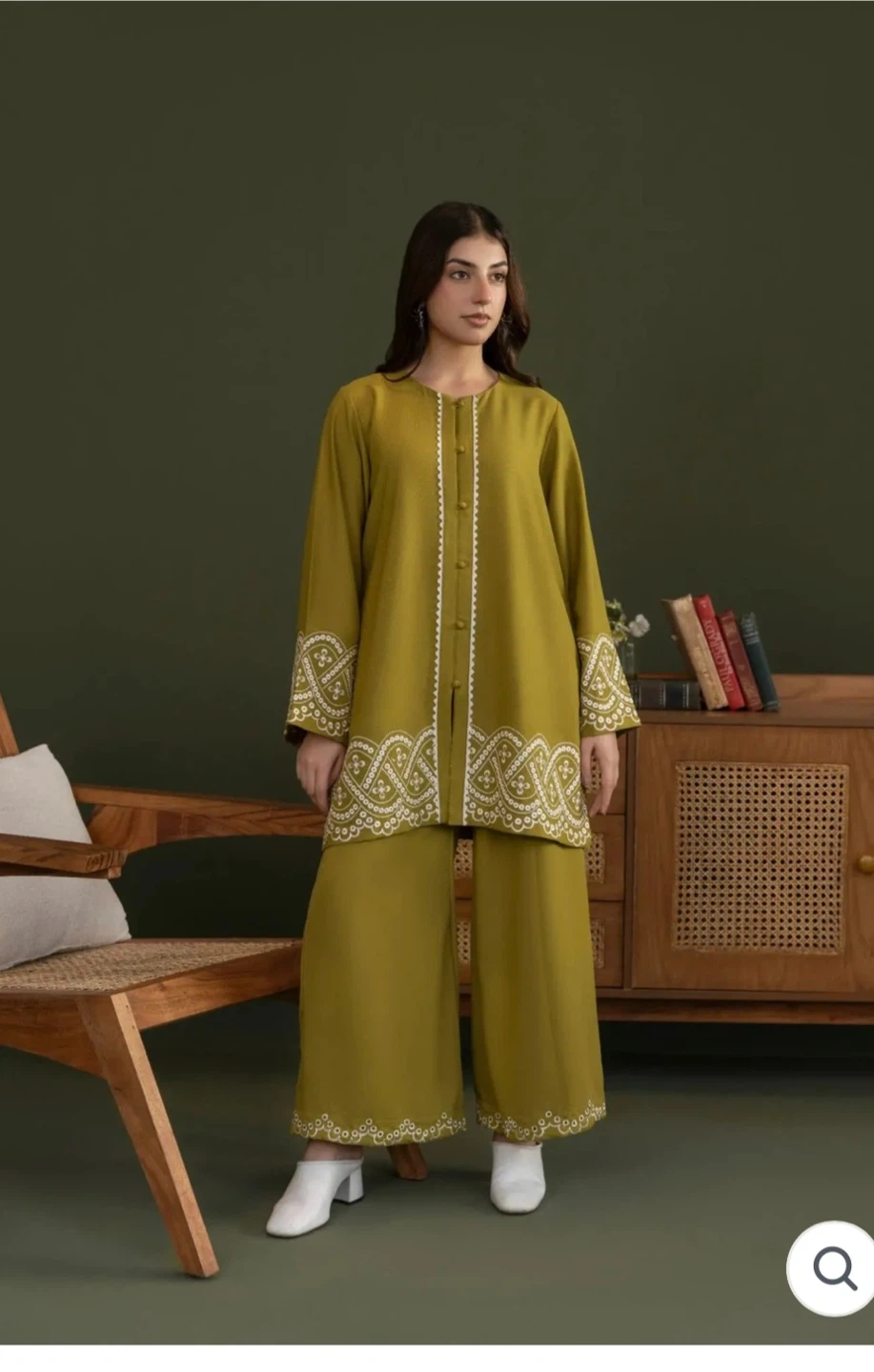 Brand new co-ord set in a lovely olive green colour. It's made from a blend of georgette material and features a round neck with a front placket. The set includes full sleeves and an elasticated belt at the trouser. Perfect for a stylish and comfortable look! ( size S but in loose style , can easily fit to Medium to Large . Plz see the last picture for further details. Porch pick up from Scarborough at Midland and Lawrence . Cash only.