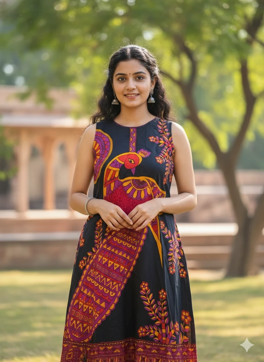 26Brand: Global design Size: L This is a lovely sleeveless Kurta featuring a vibrant peacock print. Perfect for adding a pop of colour to your wardrobe!