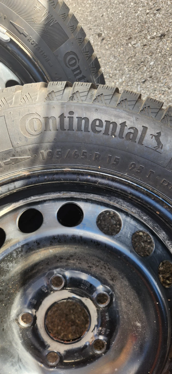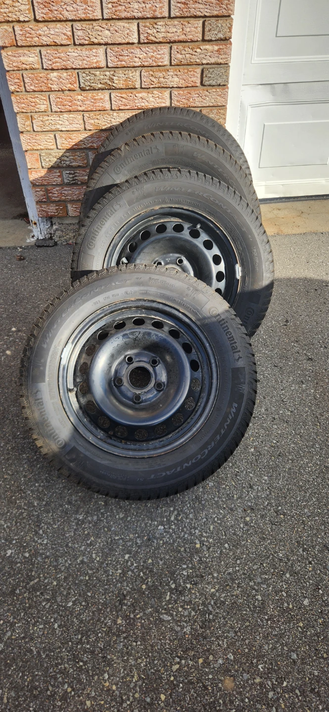 I'm selling a set of four Continental winter tires, perfect for safe winter driving! These tires are size 195/65R15 and are mounted on steel rims. They have been previously used.