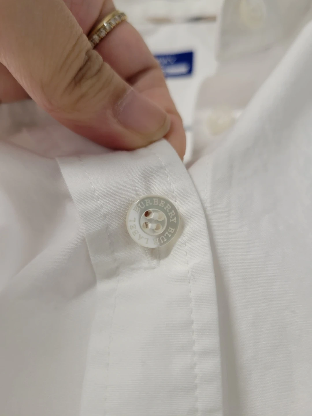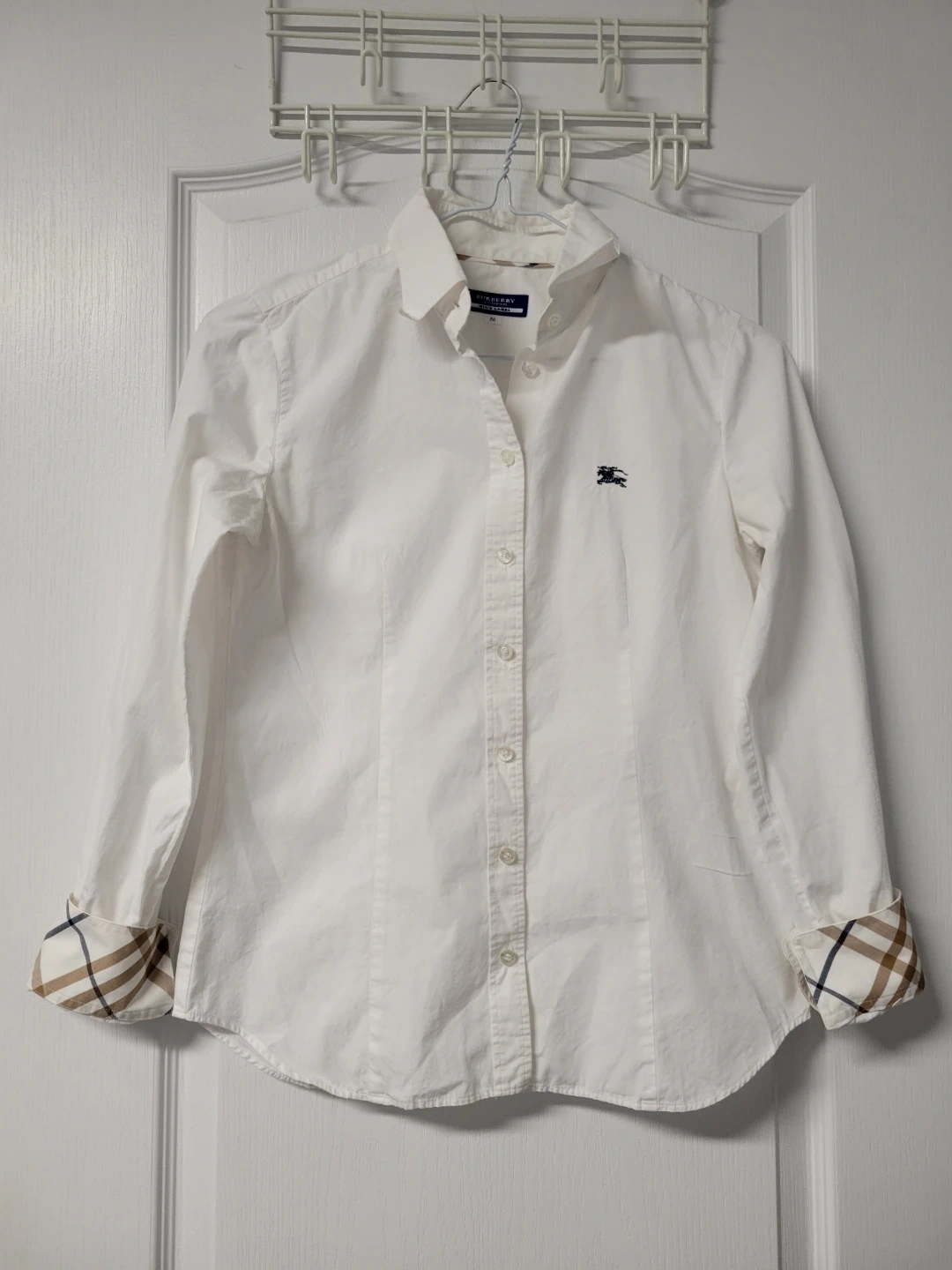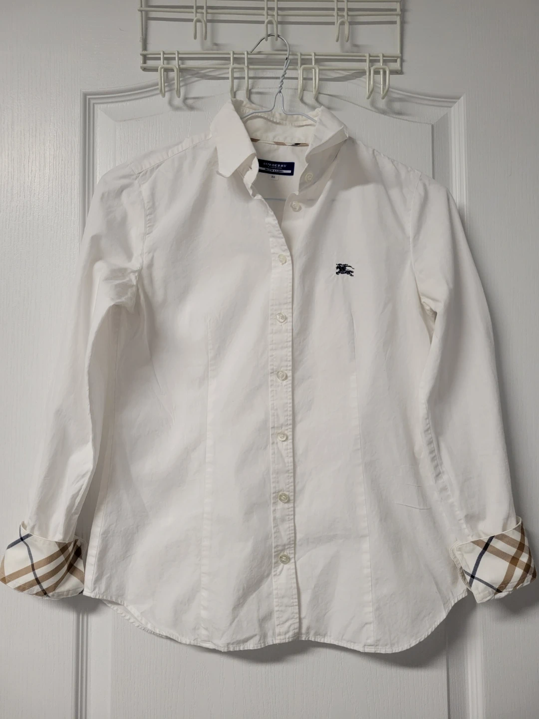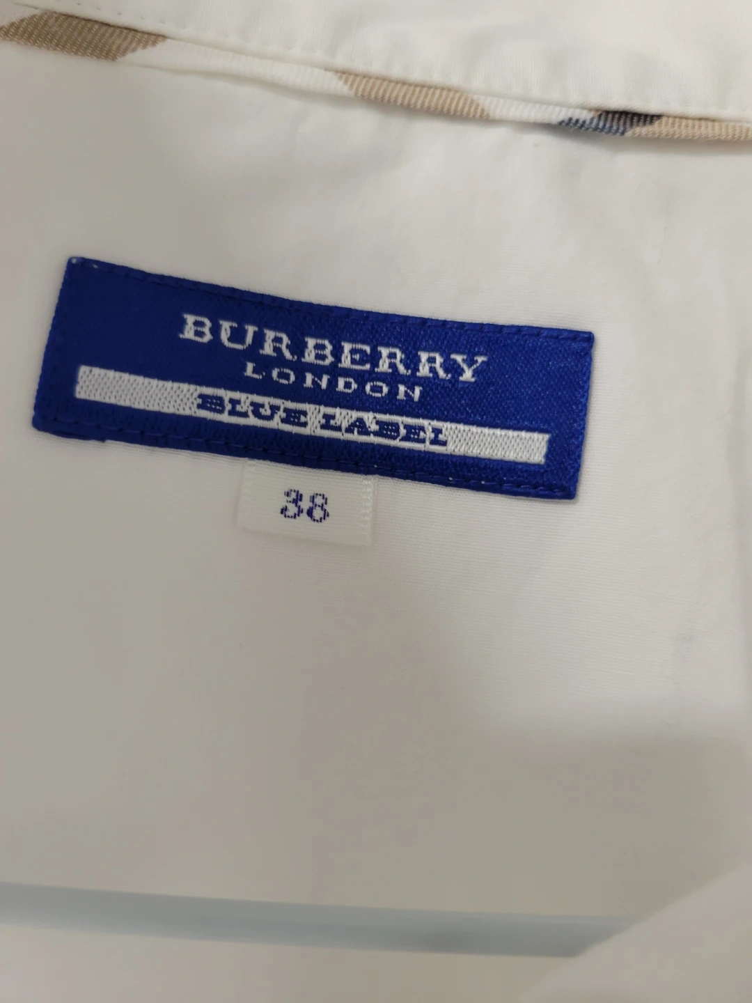 Selling a Burberry London Blue Label button-up shirt in size 38. It's a classic piece with the iconic Burberry check pattern on the cuffs. The shirt is in great condition and ready for a new home!