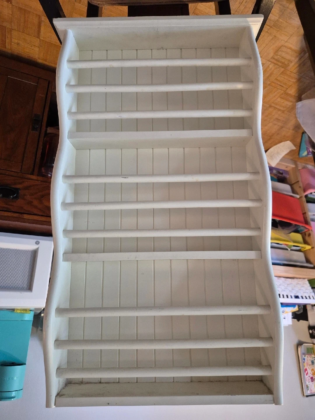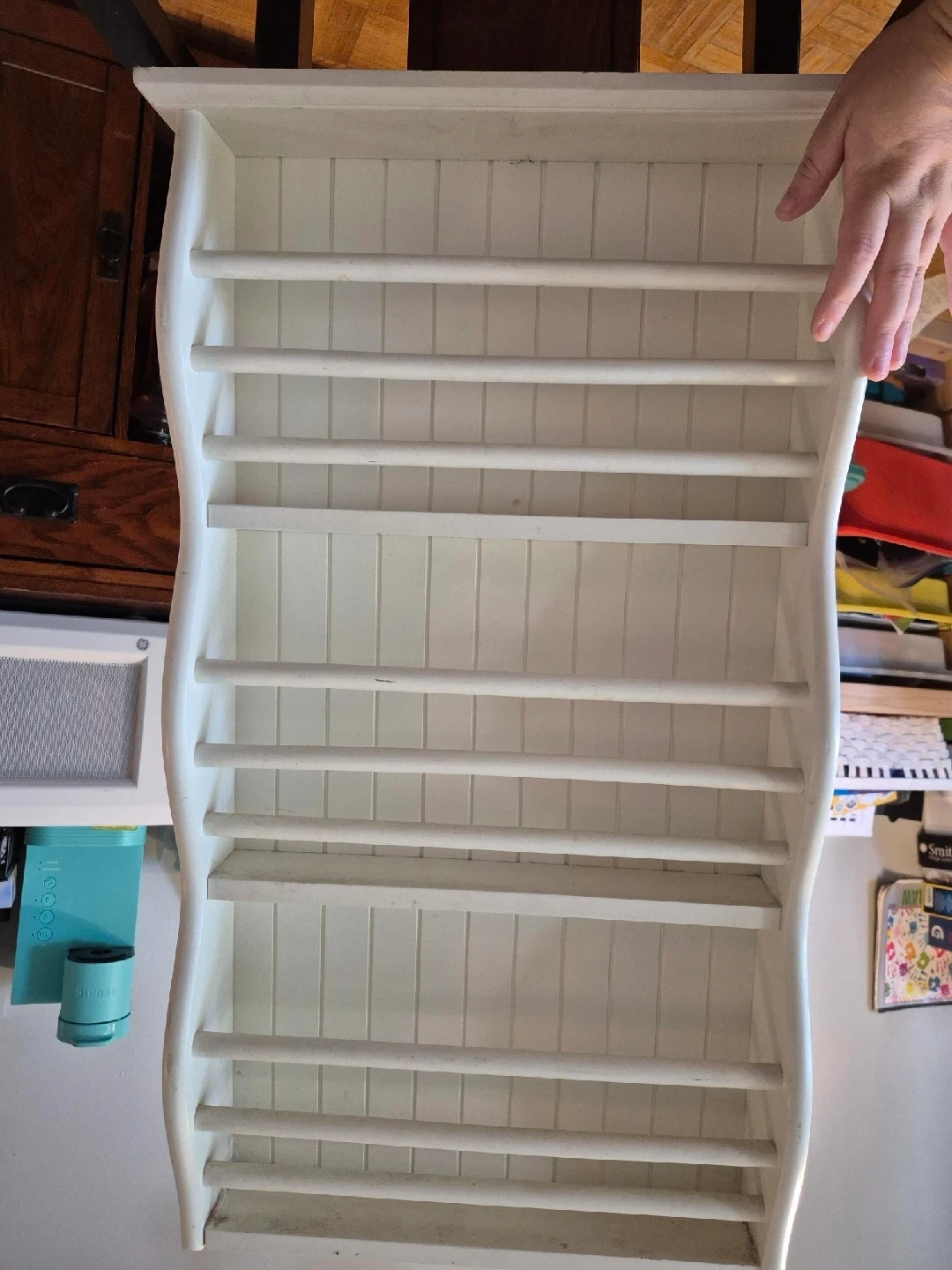 Selling a charming white wooden plate rack. It's in great shape and ready to add a touch of rustic elegance to your kitchen or dining area