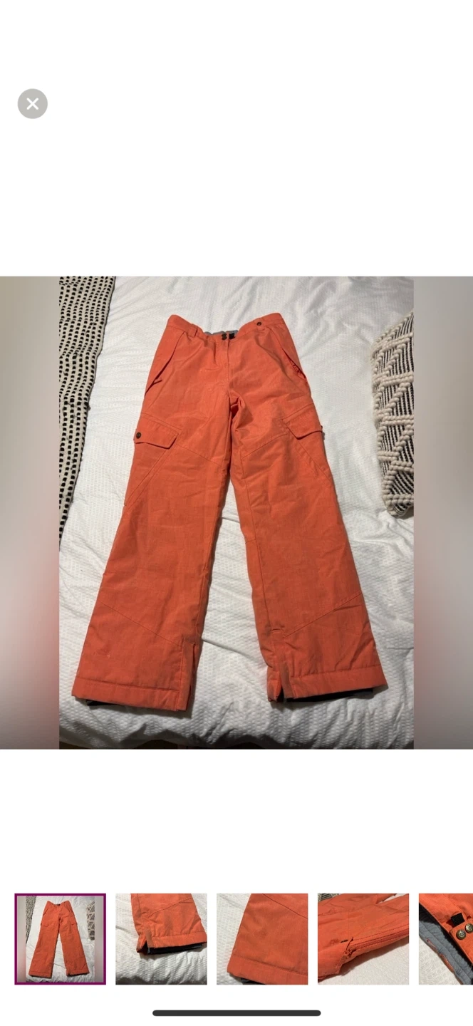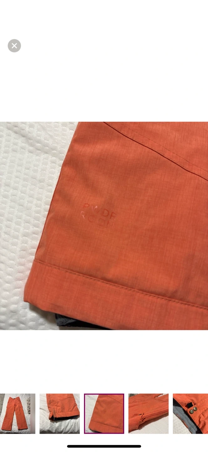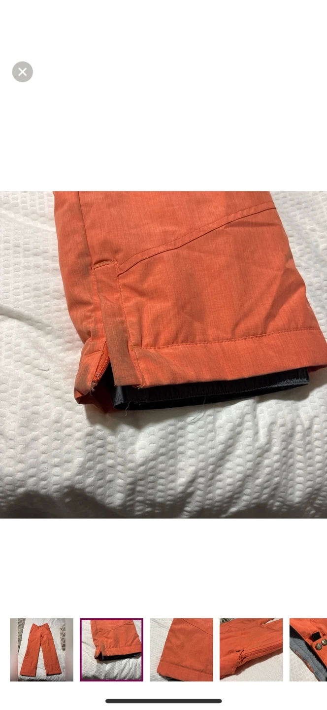 56Selling a pair of Ride brand snowboard/ski pants in orange. There are some signs of wear as shown in the pictures.