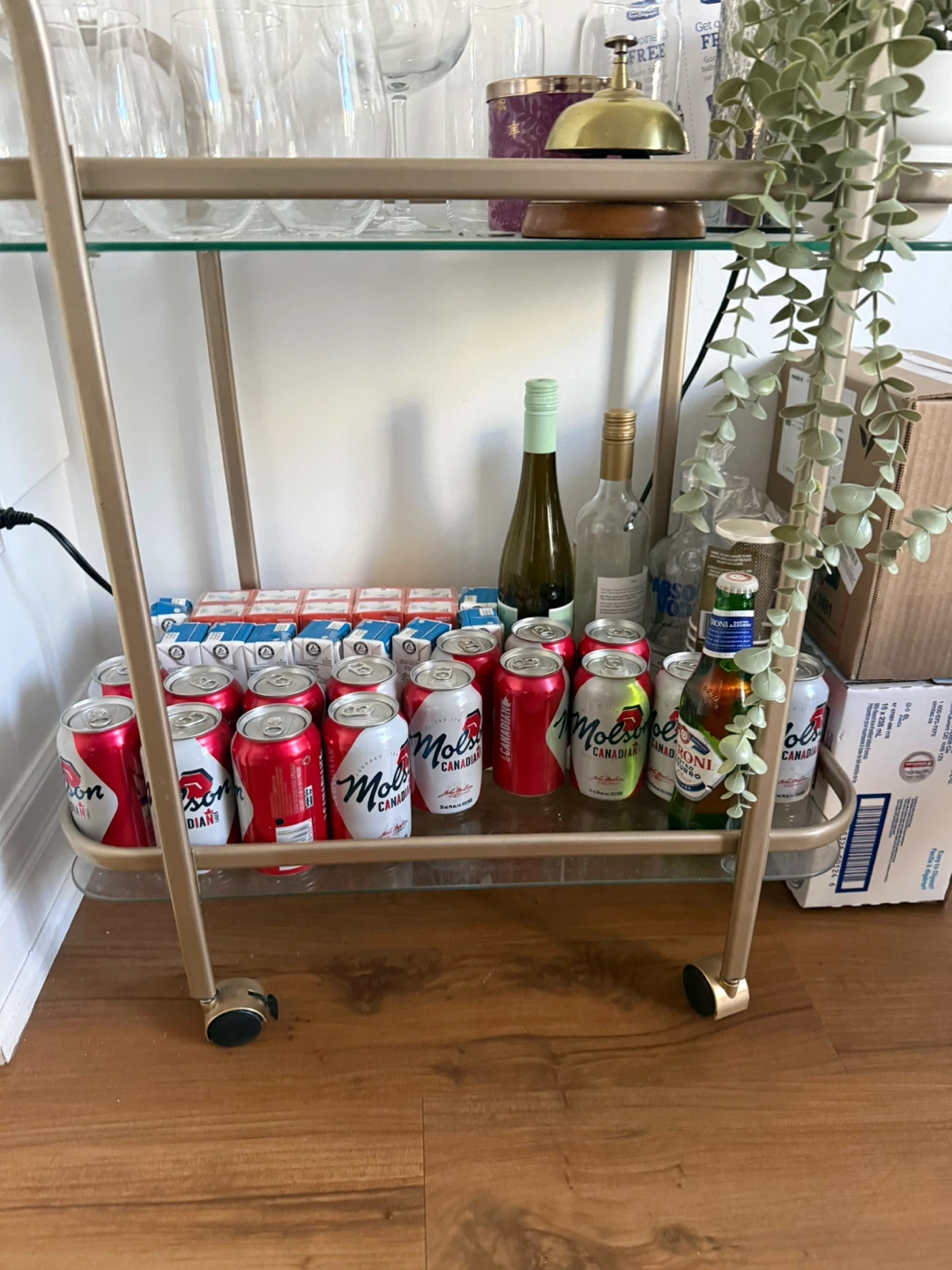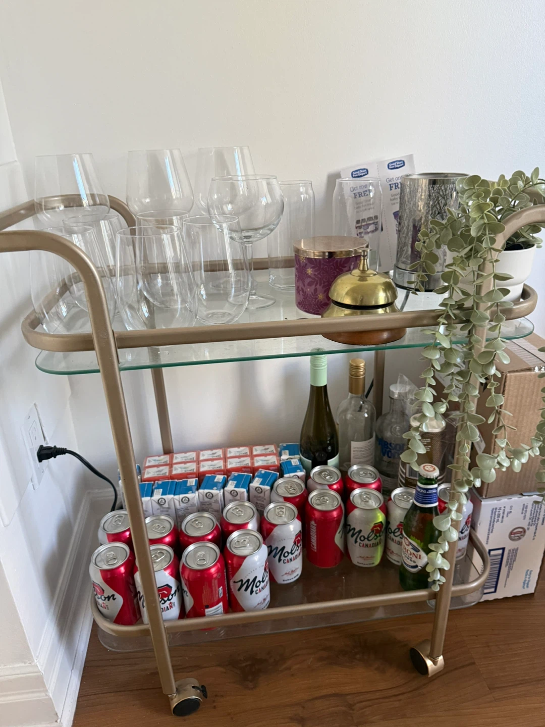 Selling a bar cart with glass shelves! It's in great shape and ready to hold your favourite drinks and glassware. Perfect for entertaining or adding a touch of elegance to your space