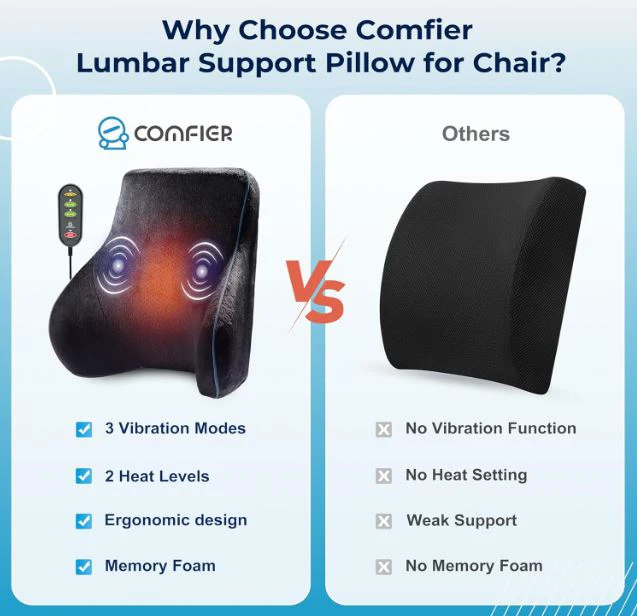 COMFIER Neck and Back Support Cushions, Lumbar Support Pillow, 3 Vibration Modes & 2 Heat Levels for Office and Home Use: