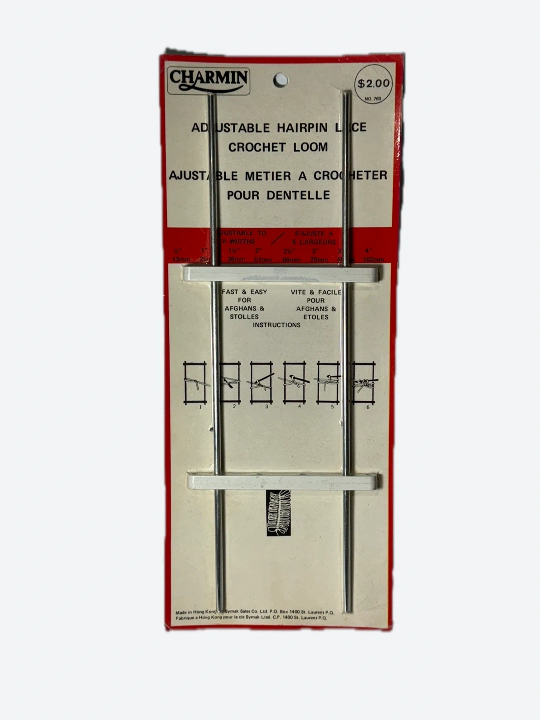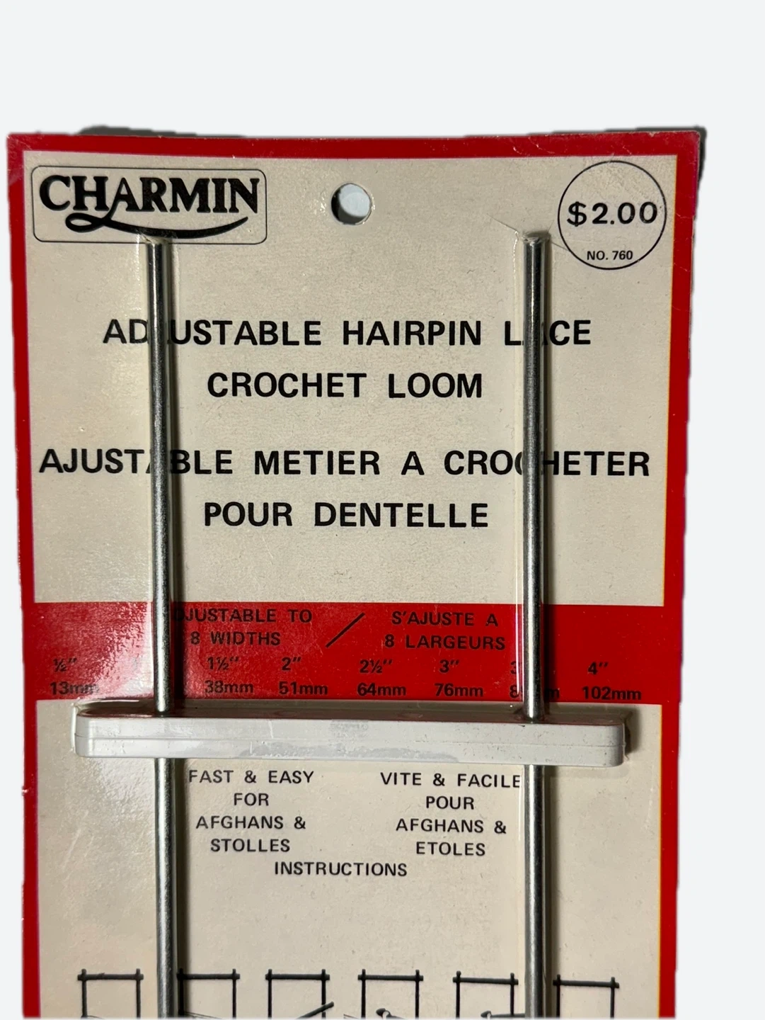 This is a vintage Charmin brand adjustable hairpin lace crochet loom.