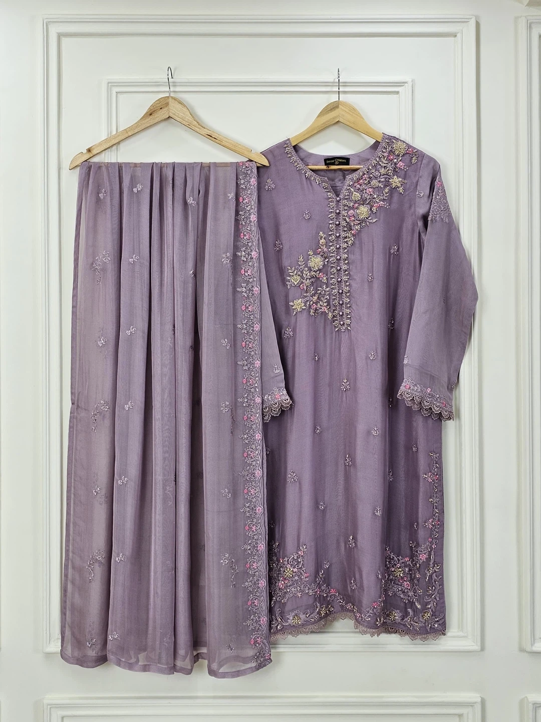 Beautiful Embroidered 3pcs Pure Chiffon Pakistani Suit
