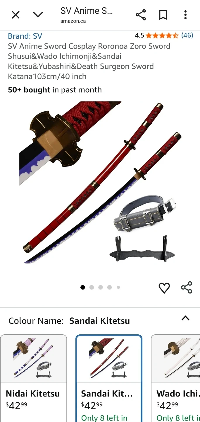 Get ready to wield the power of the Sandia Kitetsu Anime Sword, a meticulously crafted Roronoa Zoro replica, brand new in its original packaging! This plastic katana, with a 103cm total length and a 70cm blade, is perfect for cosplay, collecting, or adding a touch of anime flair to your space. The handle is wrapped with a soft rope, ensuring a comfortable grip for all your adventures.