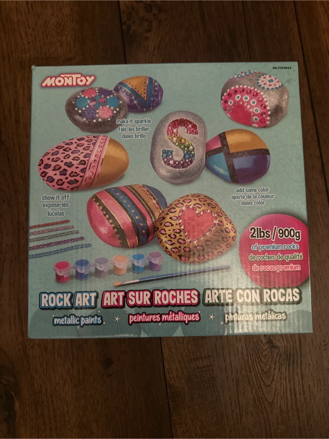 Brand new. Never been opened Includes 6 metallic paints to make your rocks sparkle and shine.