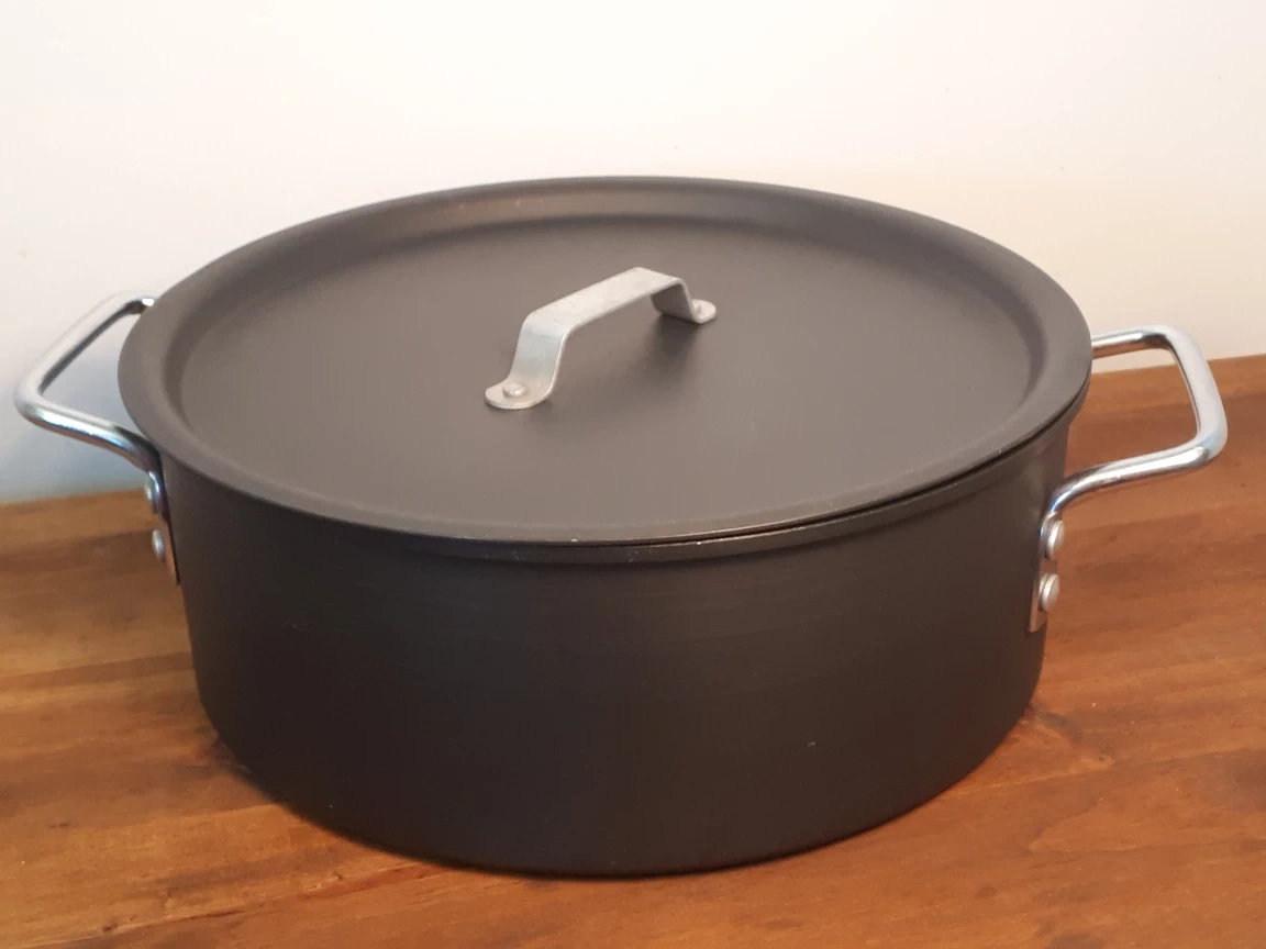 Selling a Calphalon stock pot/duch oven with a lid! From older generation of Professional series. It's a 8 1/2 quart size. Perfect for food prep as well as making large one pot meals. Fits nicely in the fridge, as well as regular sized oven. Hard anodized aluminum surface is resistant to acidic foods as well as metal utensils. Lid is made of same metal and allows 360 degree heat distribution in the oven, what's very beneficial for even and faster cooking of large amounts of food. From Professional Series of cookware.