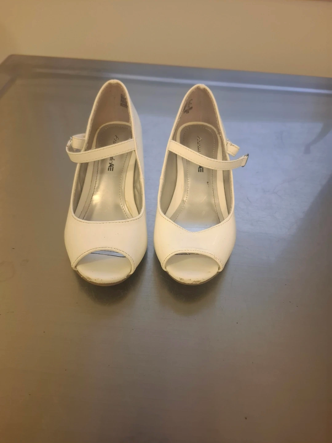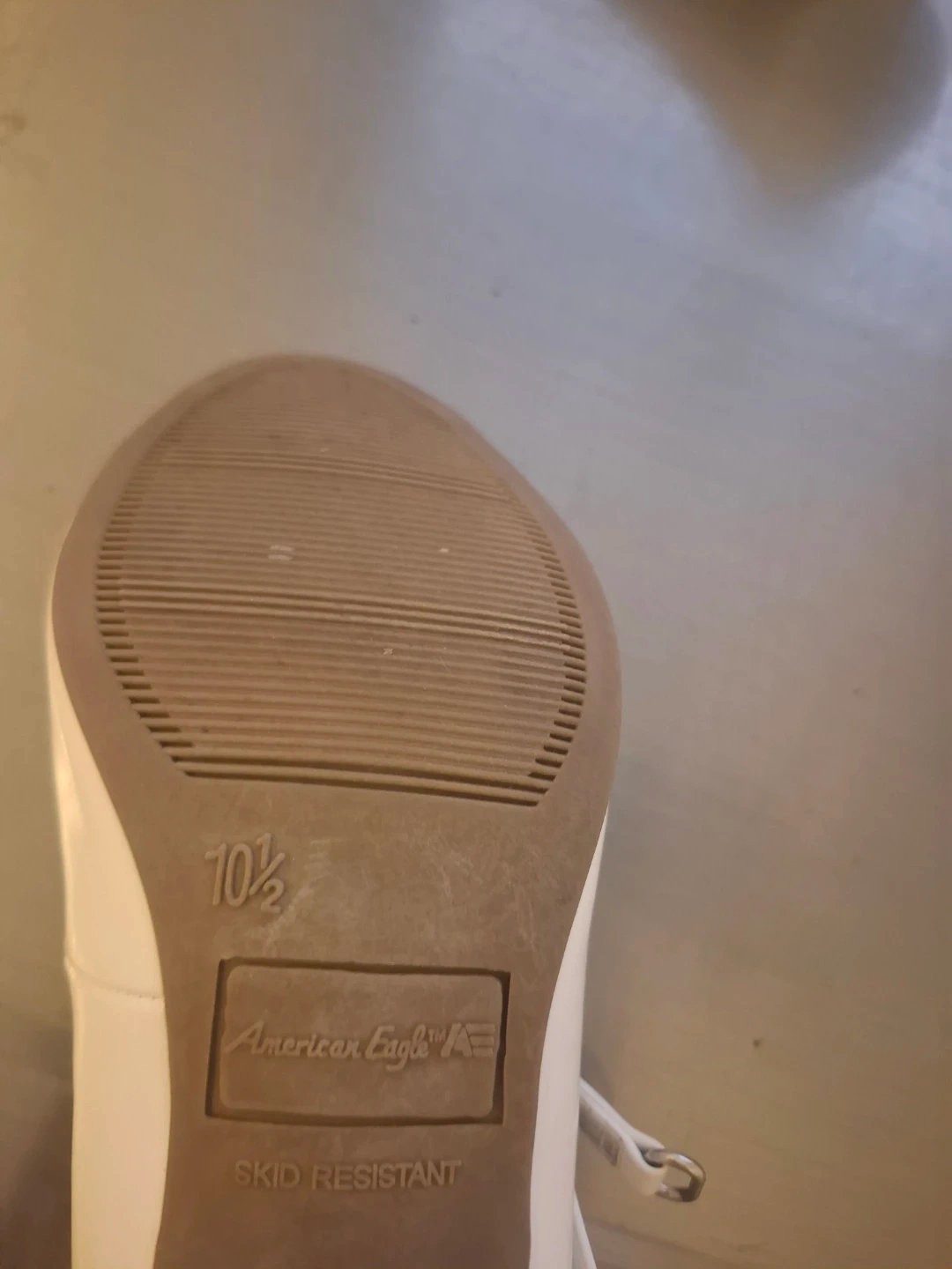 18Selling a pair of American Eagle white heels in size 10.5. They have a peep toe and a Mary Jane strap. The soles are skid resistant.