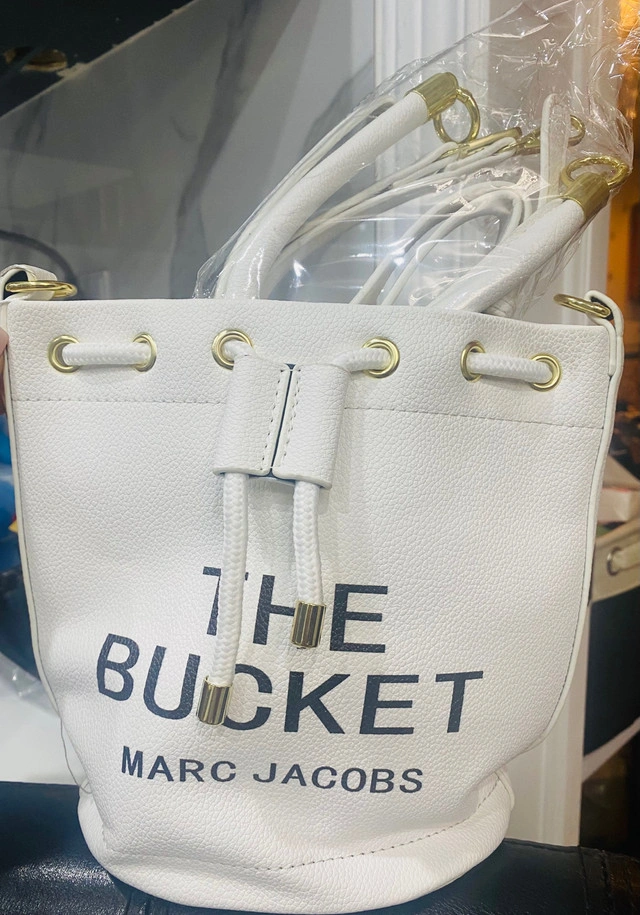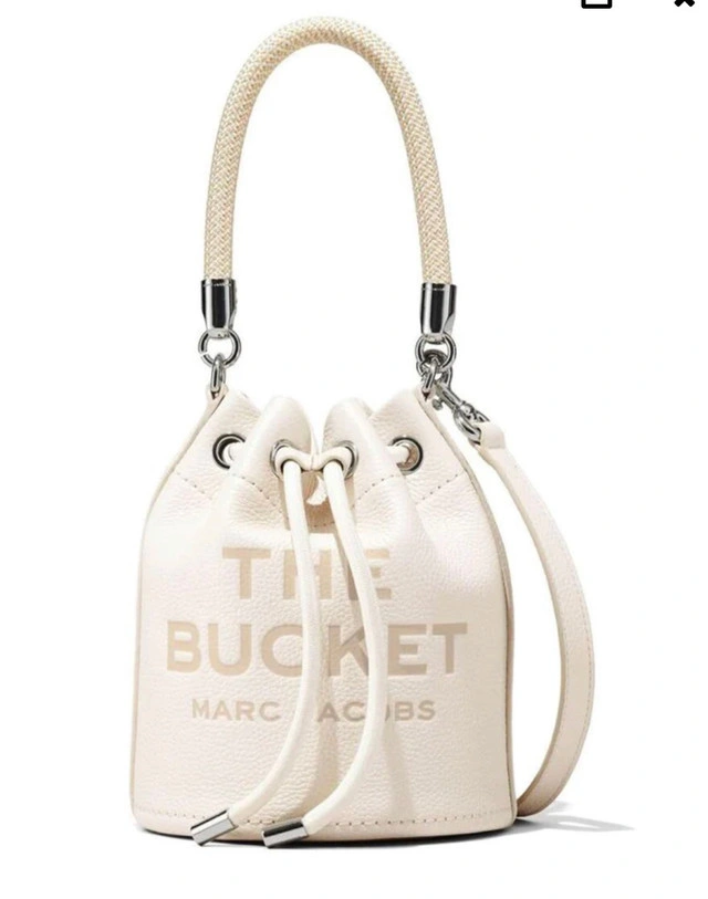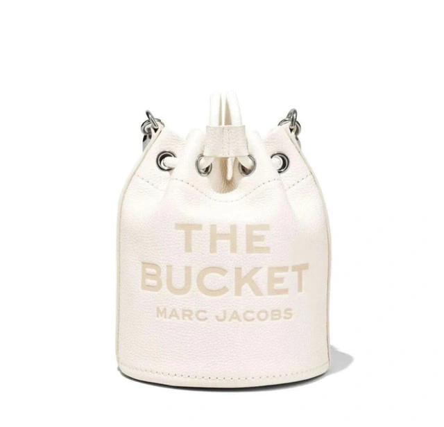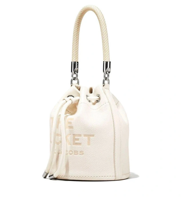 'THE LEATHER BUCKET' WHITE HANDBAG WITH DRAWSTRING AND FRONT LOGO IN HAMMERED LEATHER WOMAN