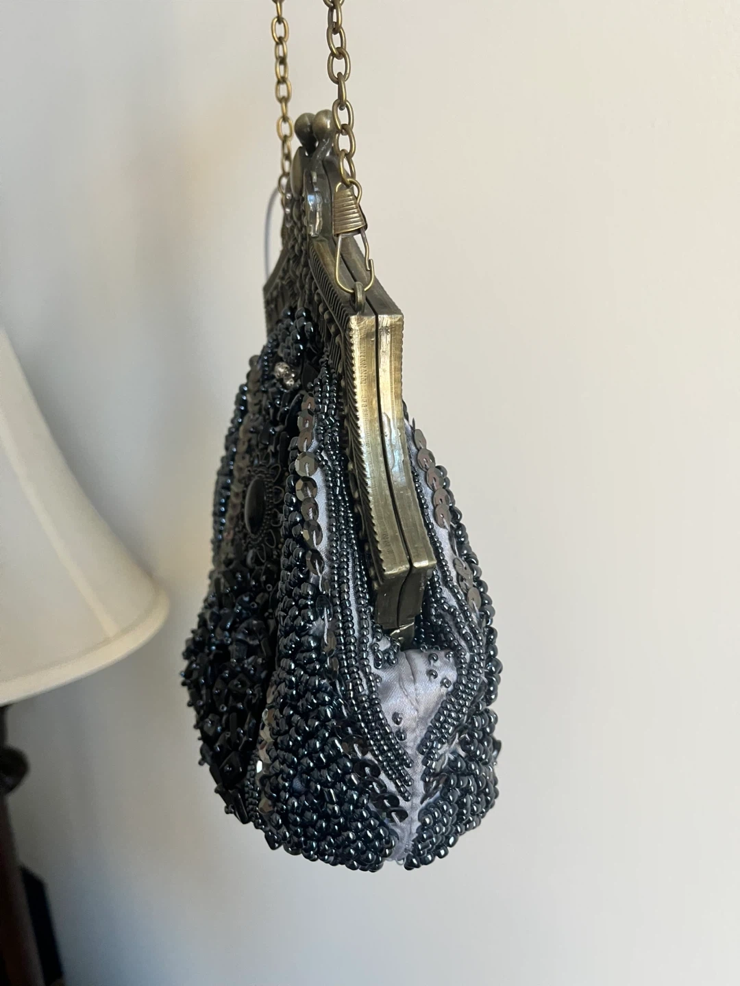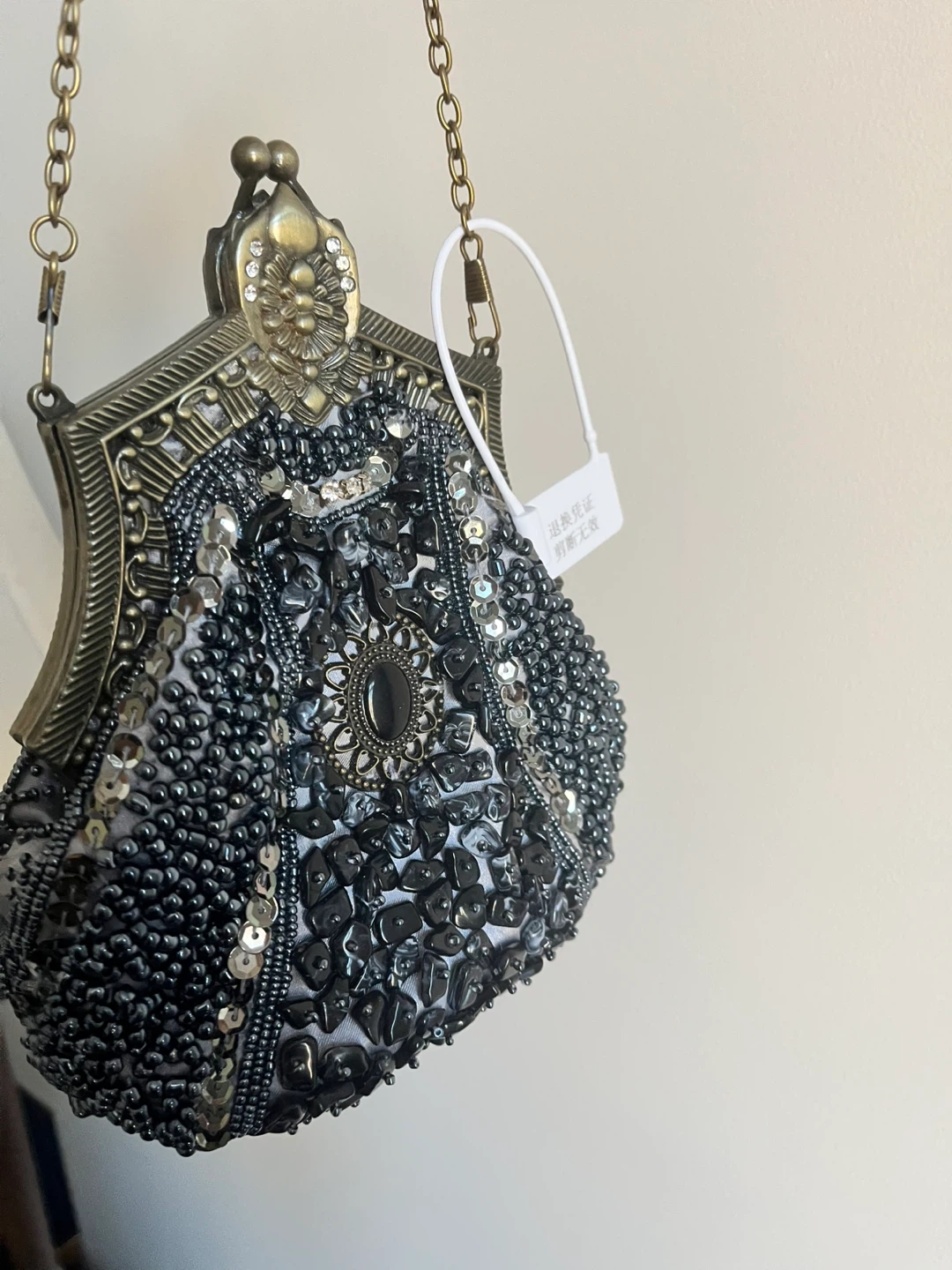 Selling a beautiful beaded evening bag. It has a unique vintage-inspired design with intricate beadwork and a metal frame. Perfect for a special occasion!