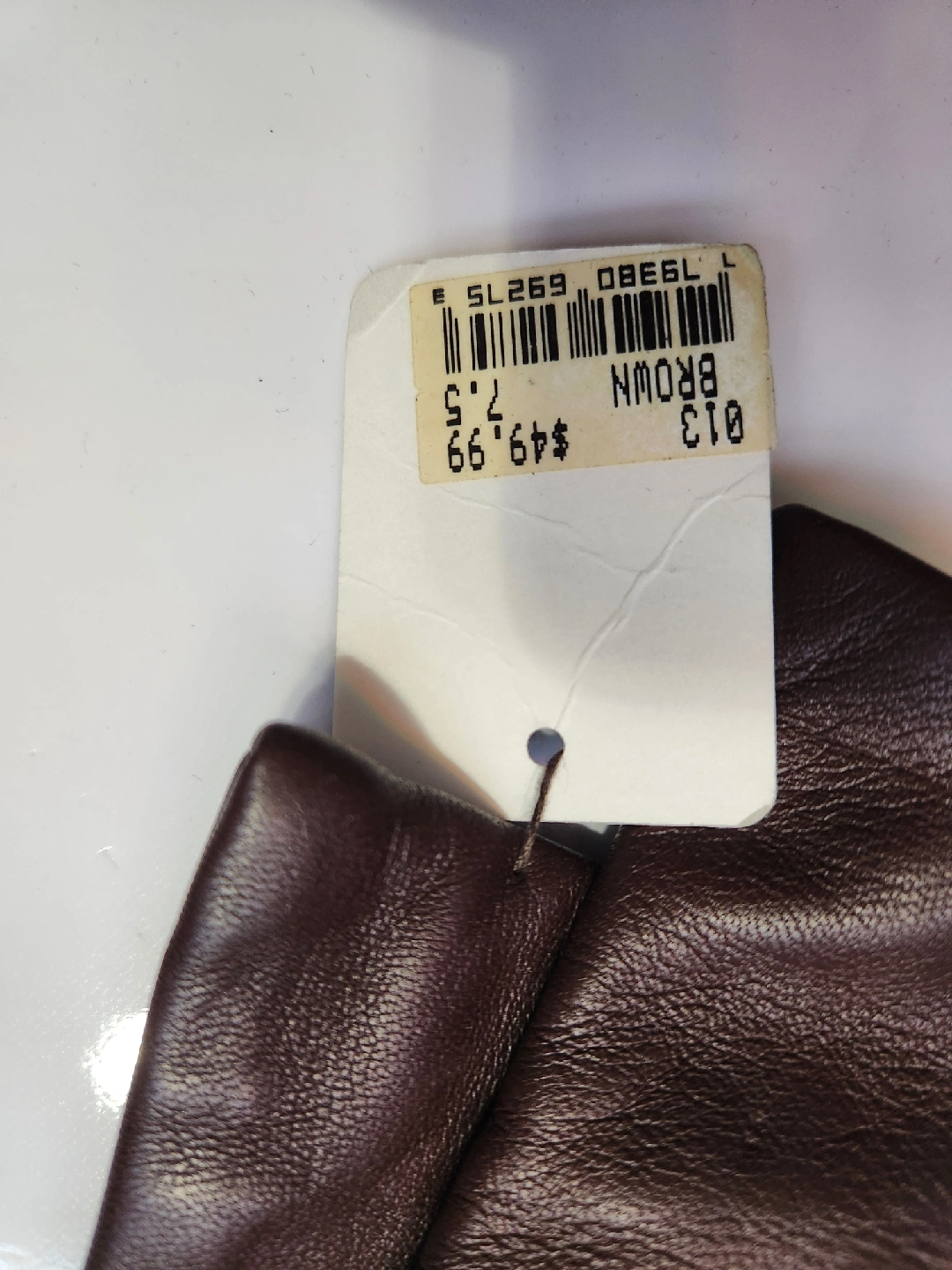 These Eaton gloves are made of 100% genuine leather and 100% wool. They are a size 7.5 and a beautiful brown colour. Originally bought for $49.99. Vintage.