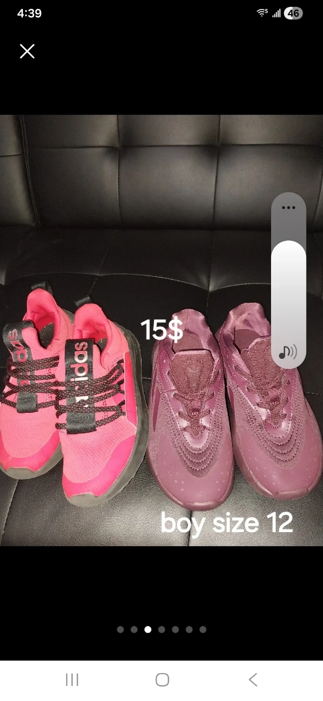 Buy & SellAdidas Kids Shoes - Size 12Adidas Kids Shoes - Size 12$14Selling two pairs of Adidas kids' shoes. One pair is pink and the other is a burgundy color. Both are size 12.ConditionGood0 chats·0 favorites·8 viewsSELLERmariaBensonhurst100 reviewsWHERE TO MEET21av 75 bay parkway