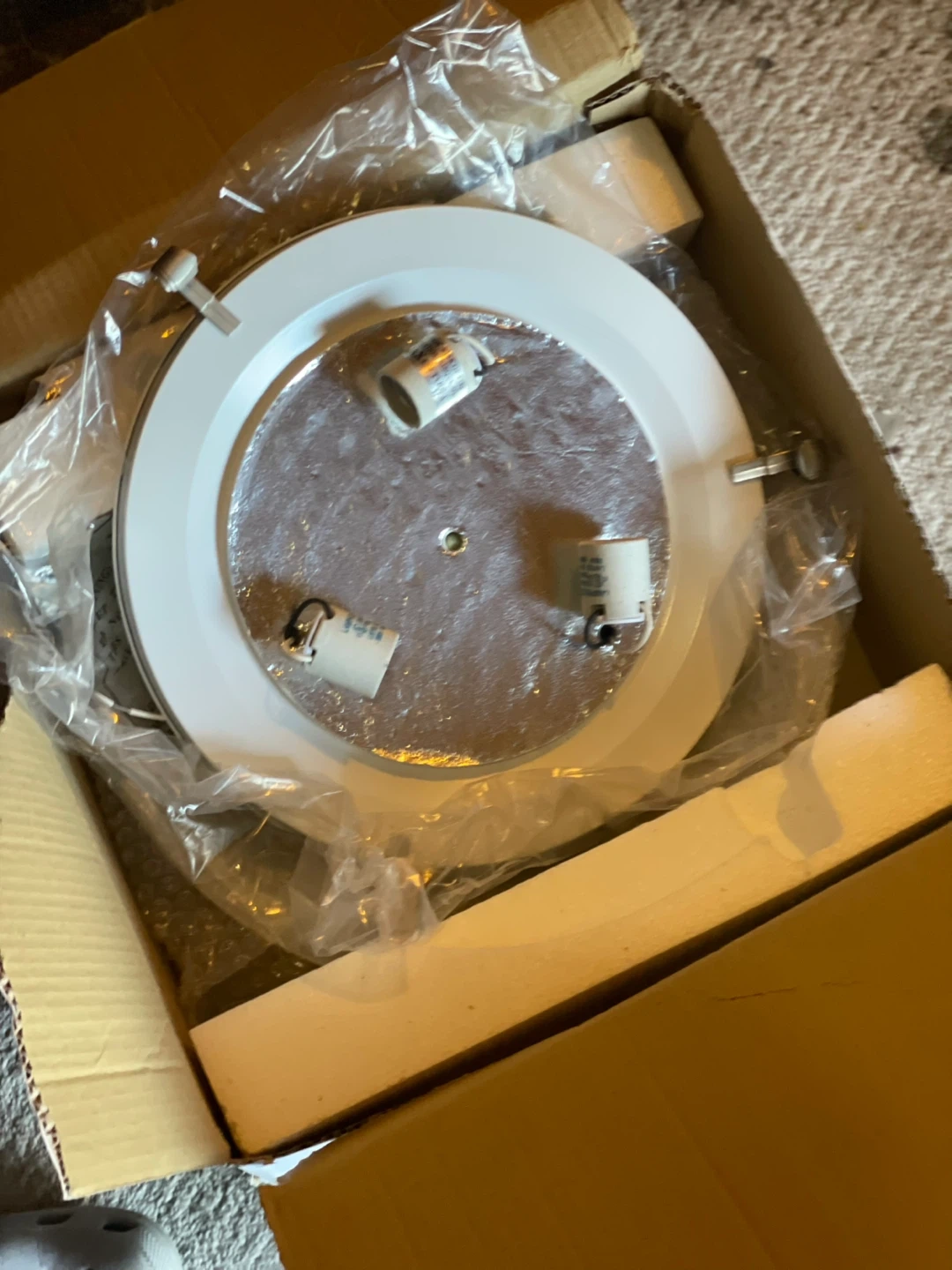 Selling a brand new flush mount ceiling light fixture! It's still in its original packaging and ready to brighten up your space. Comes with all the necessary components for installation 16 inches I have two of them