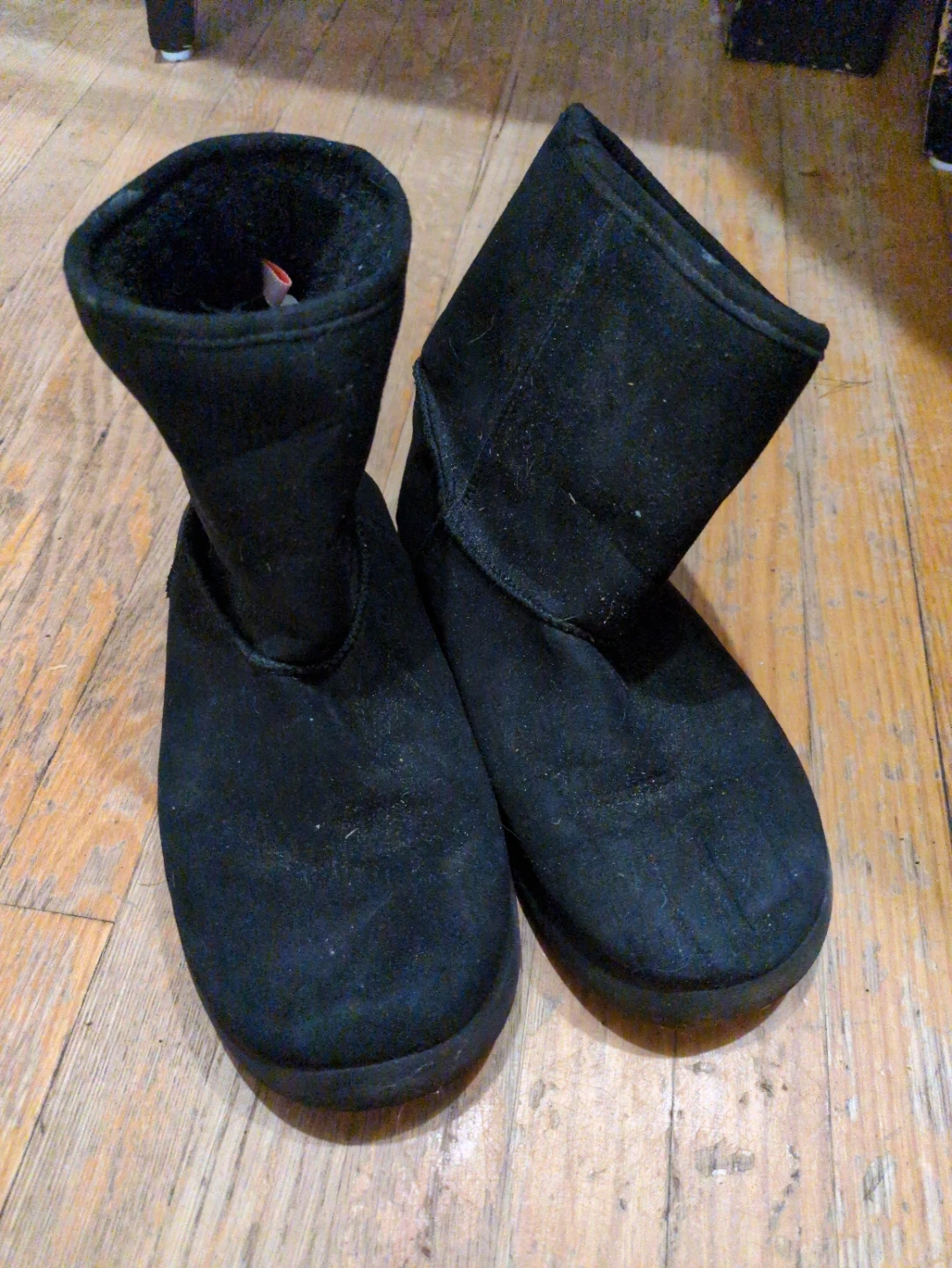 Selling a pair of black winter boots. They're a great option for keeping your feet warm and cozy during the colder months. Perfect for everyday wear! Size 3. Only worn once, inside, then got forgotten about.
