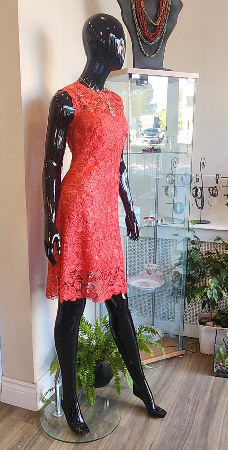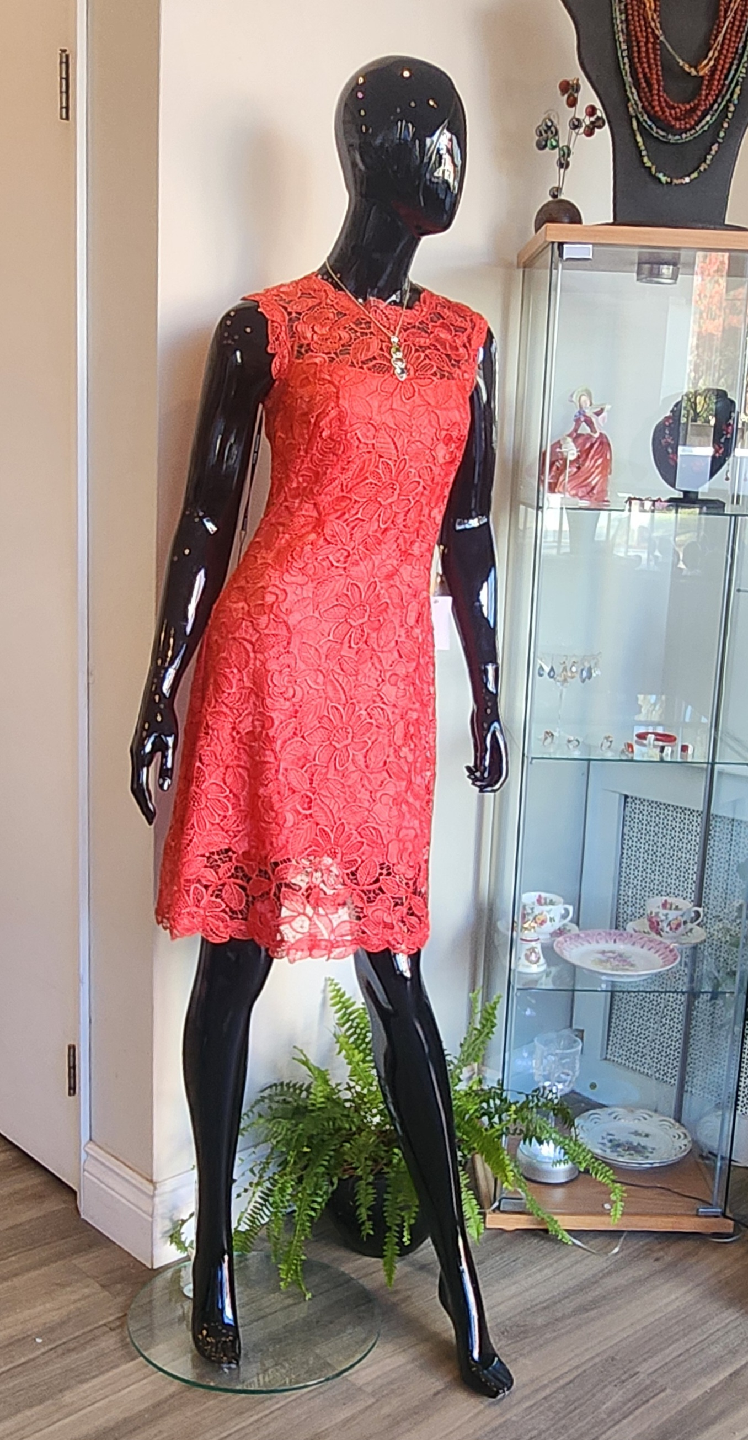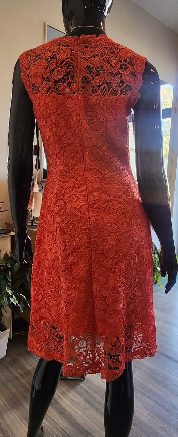 I am selling brand new Coral Red,Lace,Cocktail- Party Dress,in size 2.