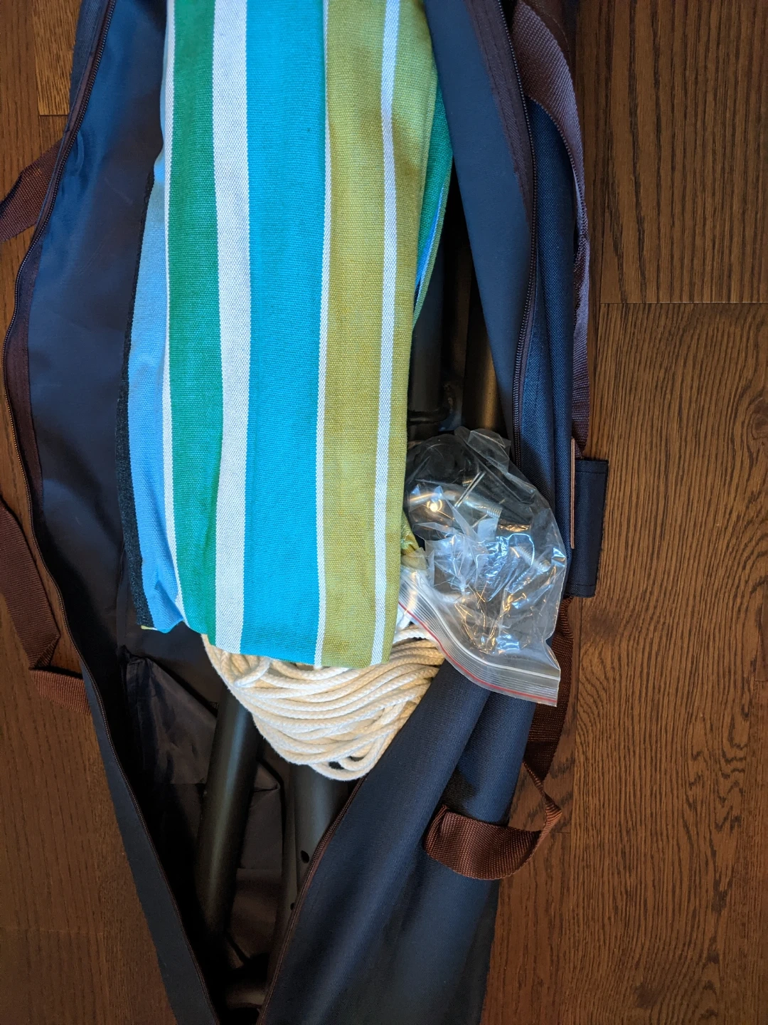 Selling a Vivere hammock with a stand! It features a vibrant striped design and comes complete with its carrying bag. All components and accessories are included, so you'll have everything you need for easy setup and relaxation in your backyard or on your patio