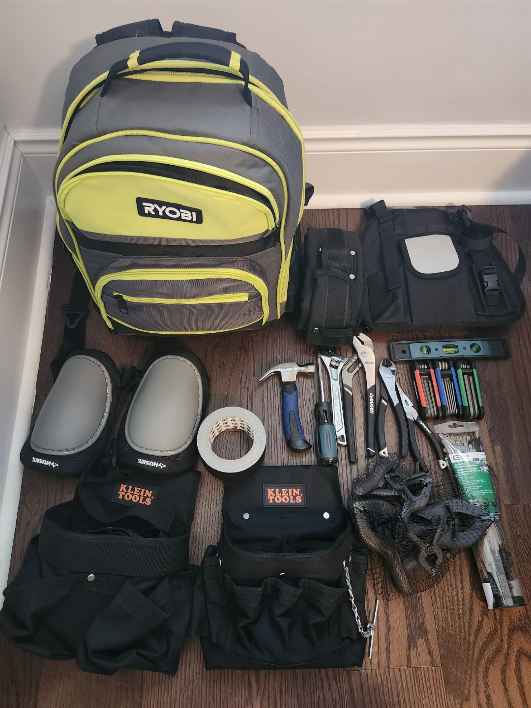 Ryobi Backpack & Klein Tools belts and tools