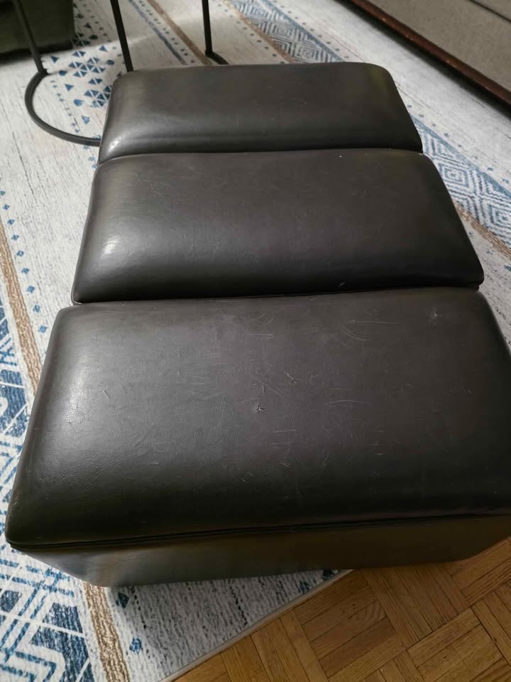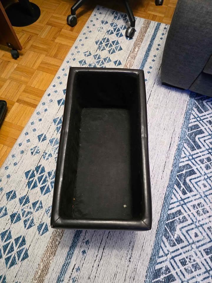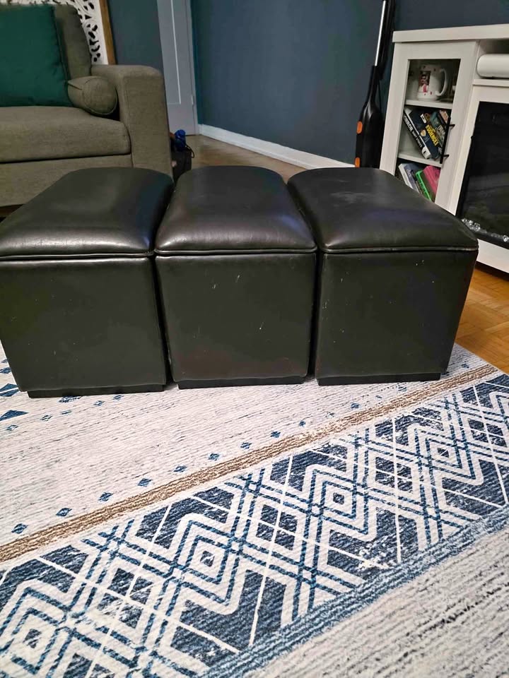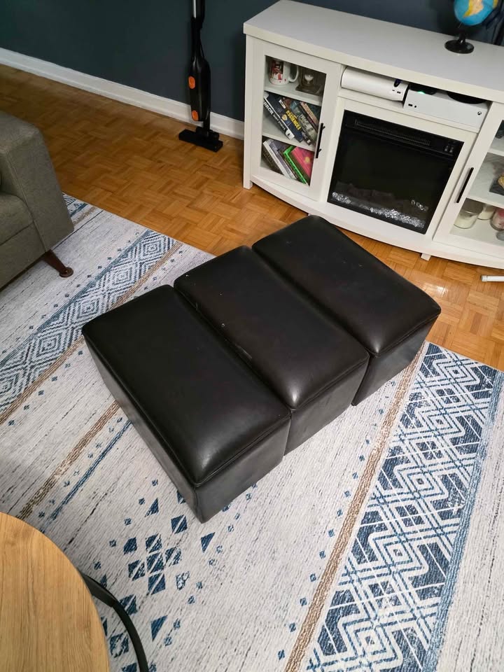 Add comfort, style, and hidden storage to your space with this 3-piece black faux-leather ottoman set. Sleek, modern design – can be used together as a long bench or separately as individual seats Built-in storage inside each section – perfect for blankets, remotes, or magazines One of the ottomans has minor surface scratches (shown in photos) – purely cosmetic and doesn’t affect function and the other 2 are in great condition.