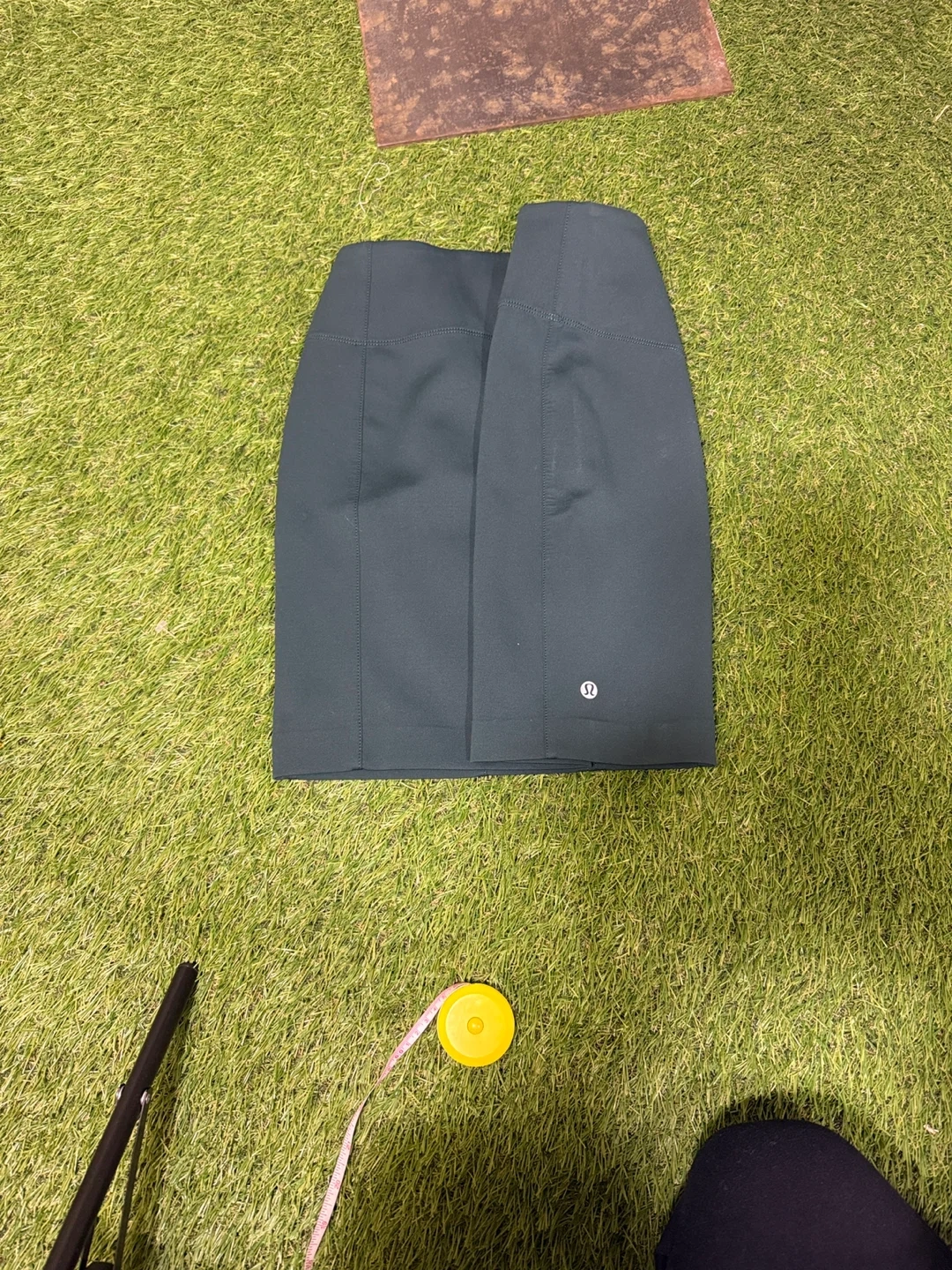 Selling a Lululemon skirt in size 6. It's a nice dark green colour. The material is 56% nylon and 44% spandex for the self, and 86% polyester and 14% spandex for the lining