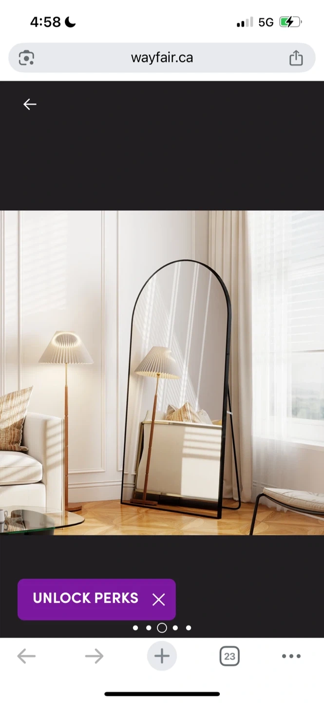 Looking to add a touch of elegance to your space? This Wayfair arched floor mirror is just the thing! The sleek black frame complements any decor.
