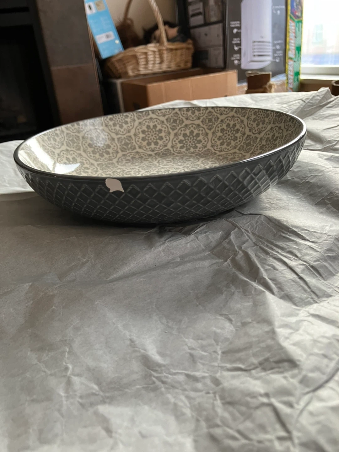 Selling a set of 4 decorative serving bowls. They feature unique patterns and colours. Perfect for adding a touch of style to your table! 3 bowls are Brand New - Purple, Green, Grey. Blue bowl (used)