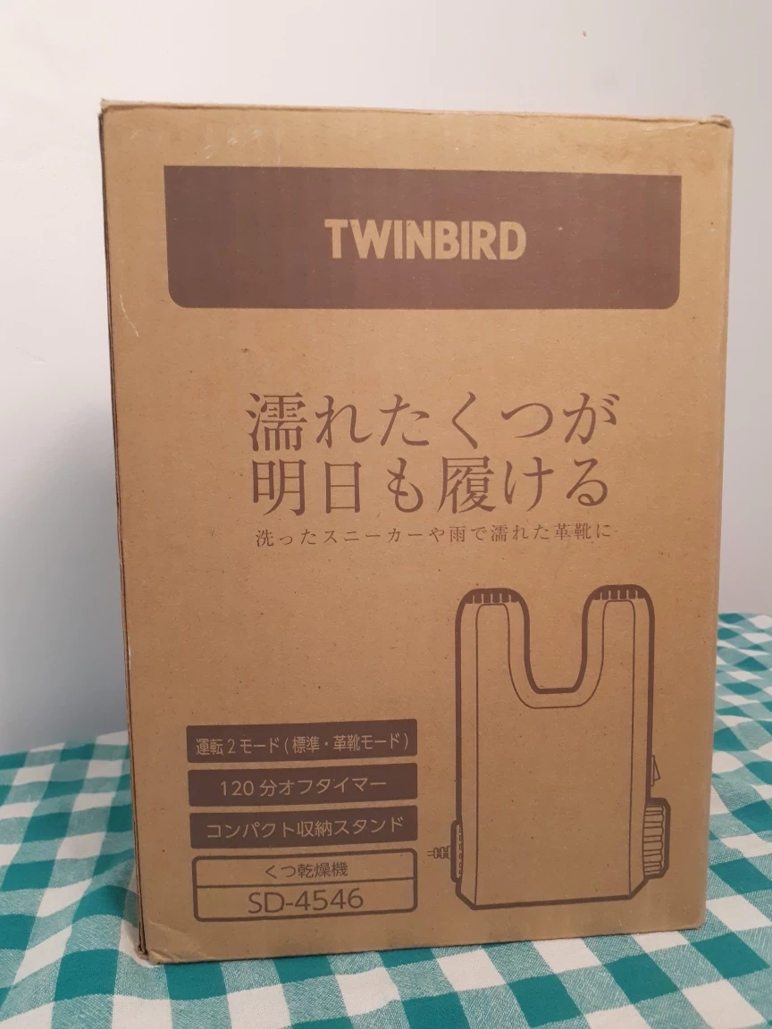 Here's a Twinbird shoe dryer, model SD-4546! It's designed to dry wet shoes and sneakers. It features two operation modes: standard and leather shoe mode. Timer is up to 120 min. It also comes with original box and instructions.