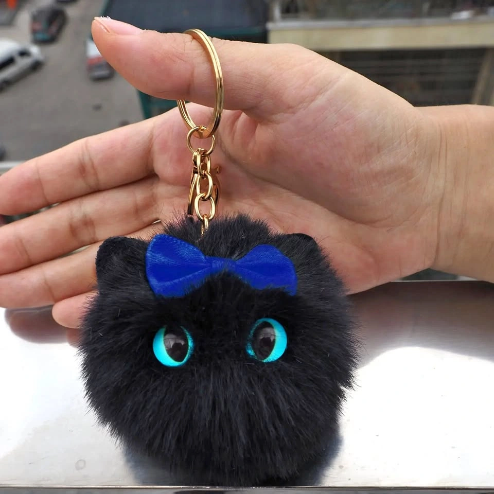 Fluffy Black Cat Keychain ๐พ | Cute Plush Bag Charm