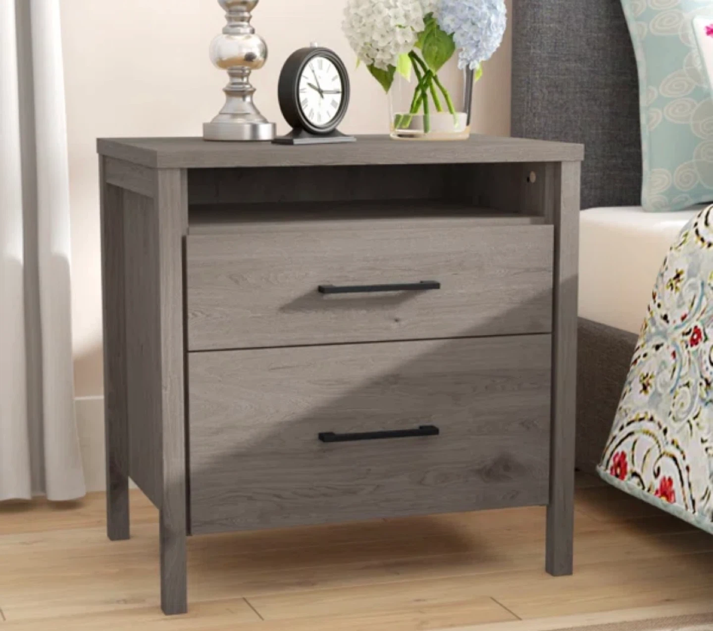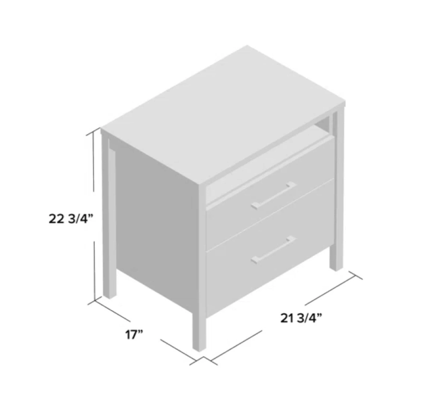 10Here's a lovely nightstand with two drawers! It's perfect for keeping your bedside essentials organized. The dimensions are 22 3/4" (height) x 21 3/4" (width) x 17" (depth). It comes in a neutral grey colour that will match most bedroom decor. Selling both and are in Fantastic condition