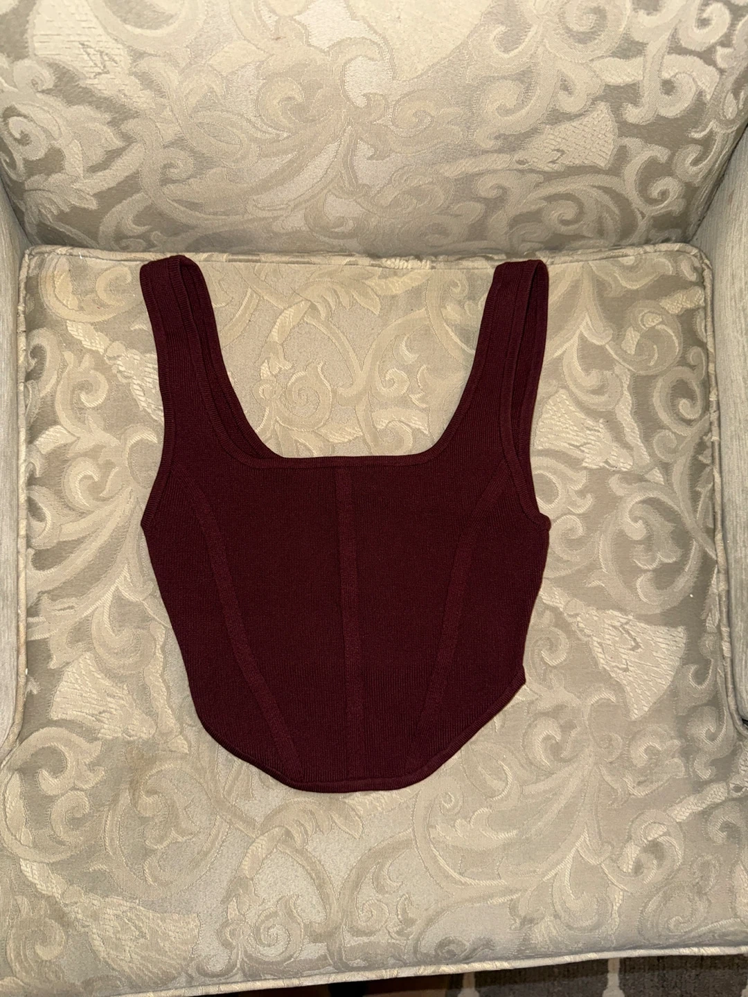 Selling a Babaton Contour Squareneck top in size 2XS. It's a beautiful burgundy colour and in great condition, never worn and has extra string still attached