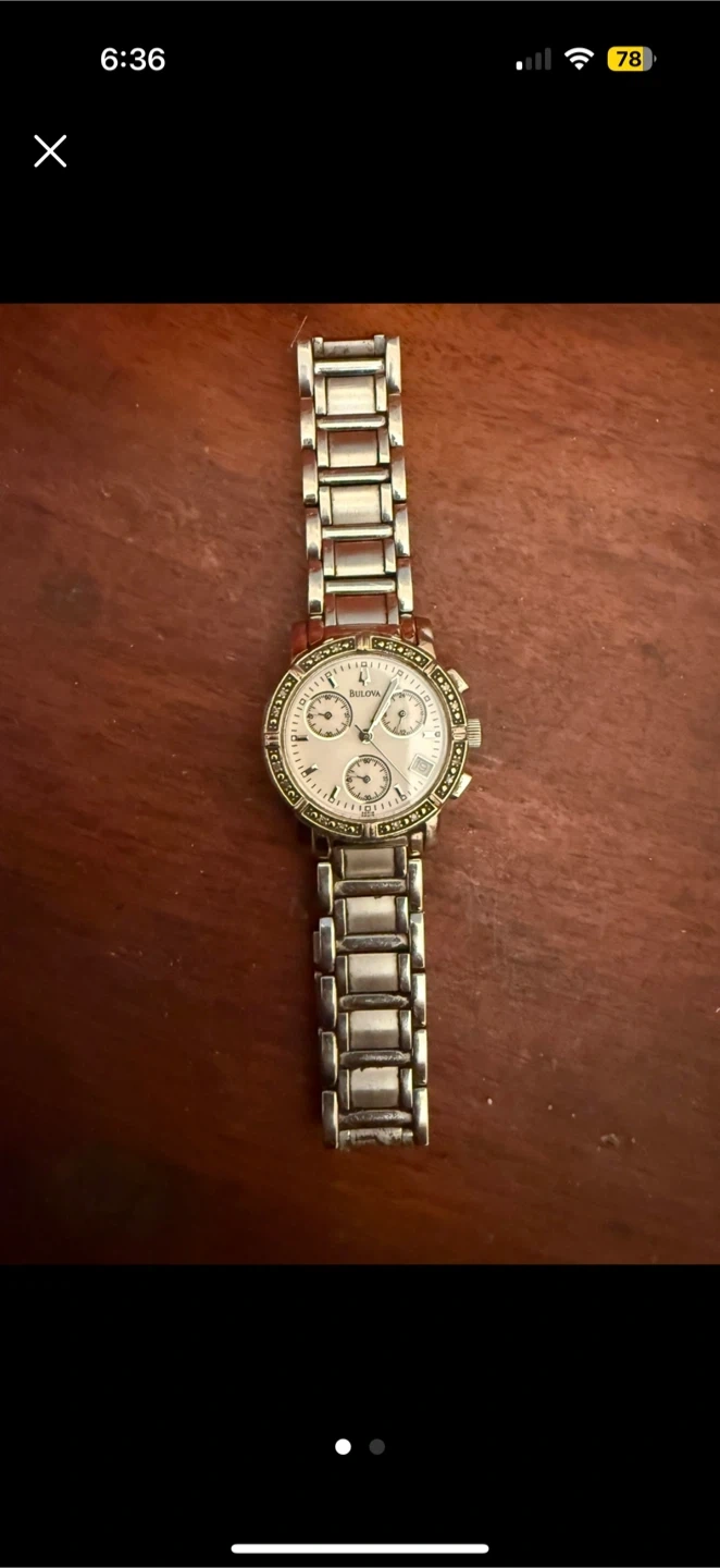 Buy & SellWomen’s Bulova diamond chronograph watchWomen’s Bulova diamond chronograph watch$250Needs a battery. Pick up only. Cash only.WHERE TO MEET10603 White PlainsView MapSELLERAdrienneNorth White Plains250 reviews0 chats·0 favorites·16 views