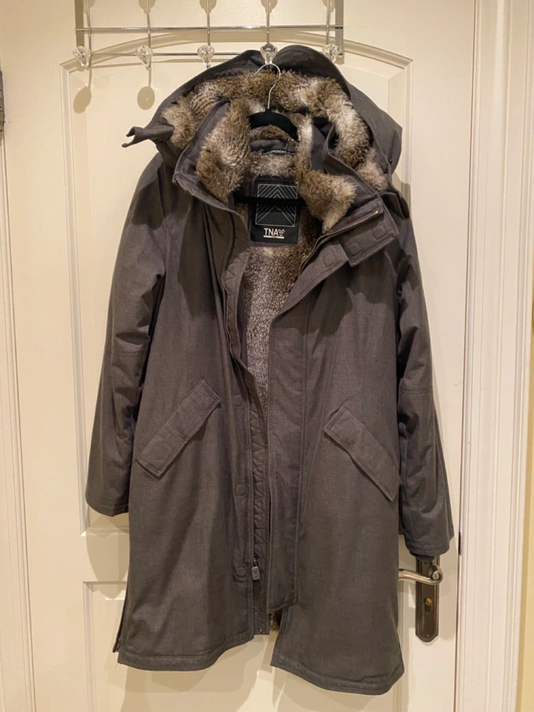 Selling a TNA winter parka in a lovely grey colour! It's in excellent condition and super warm for those cold Canadian winters. Perfect for staying cozy and stylish!