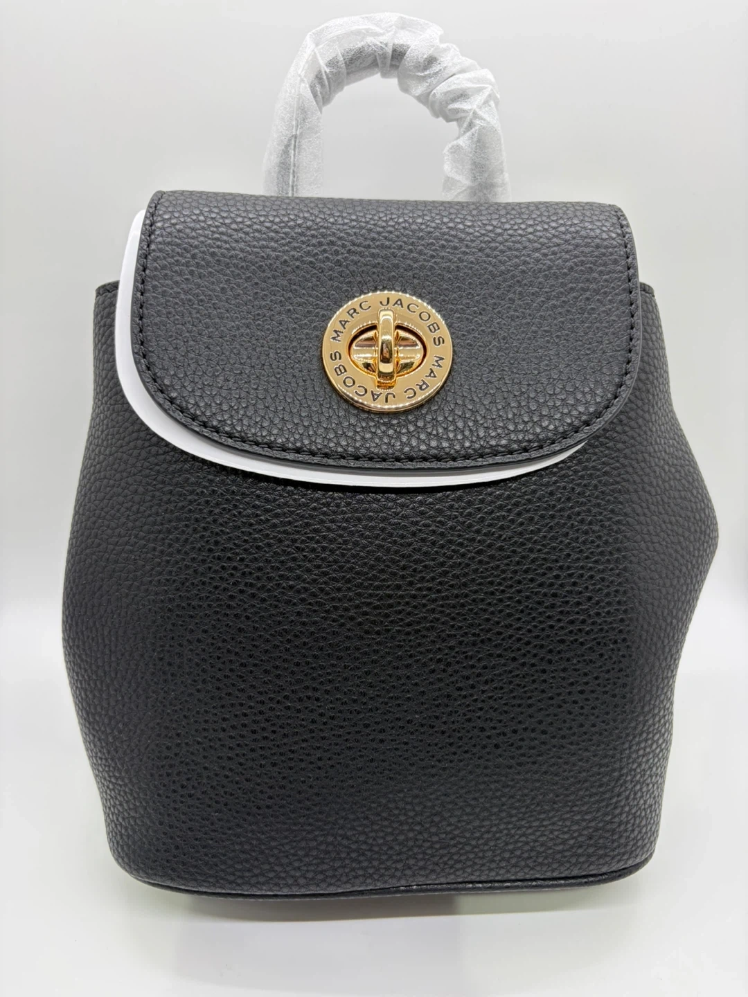 This is a brand new Marc Jacobs mini backpack in black leather! It's a stylish and compact bag, perfect for carrying your essentials. The bag features a distinctive design with the Marc Jacobs logo. It's new with tag.