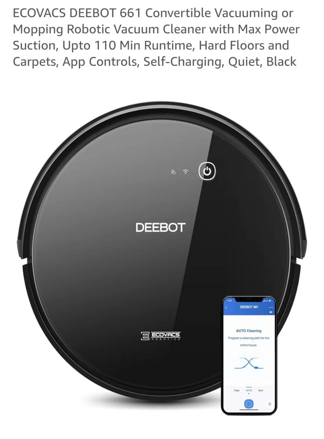 This DEEBOT 661 is a convertible robot that vacuums or mops your floors. It offers max power suction with up to 110 minutes of runtime. App controls and self-charging make tidying up easy!