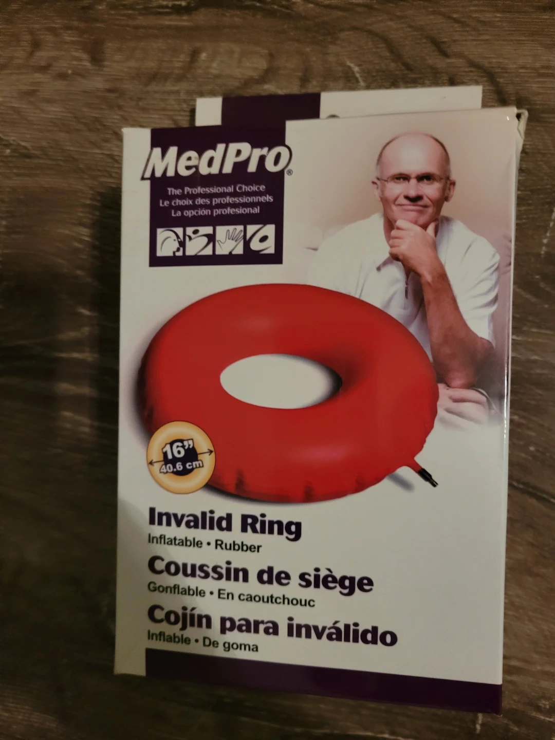 128Selling a MedPro inflatable invalid ring cushion! It's 16 inches (40.6 cm) and made of rubber. Perfect for providing comfort and support. The box is also included