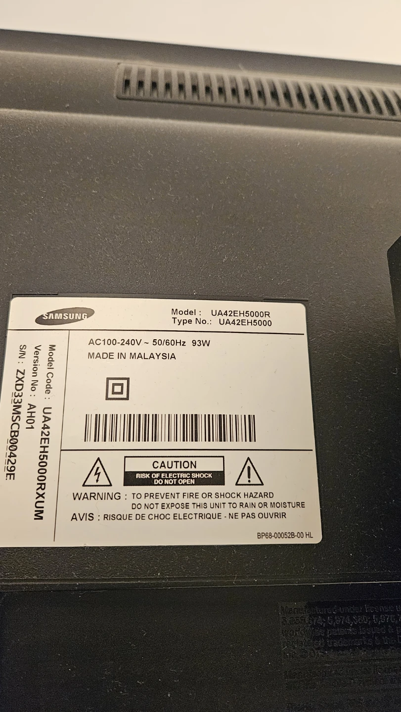 For sale: 42" Samsung UA42EH5000R TV. Excellent condition, works perfectly. Upgrading, so it's time to let someone else enjoy it!