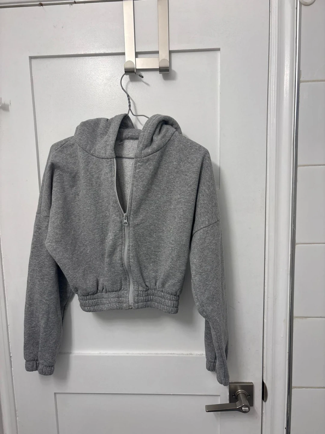 Selling a cute grey cropped zip-up hoodie! It's in great condition and would be a stylish addition to your wardrobe