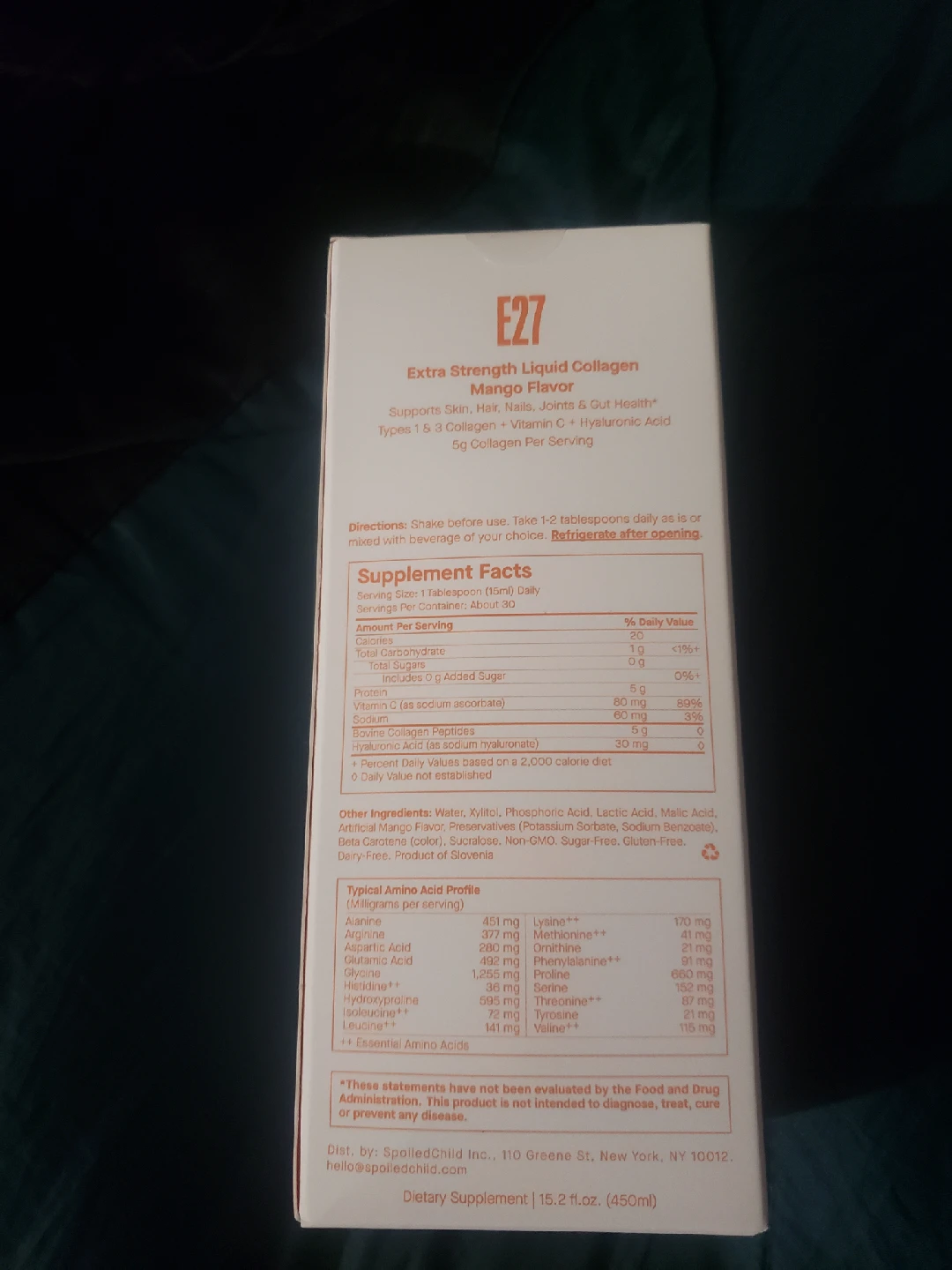 Selling a box of SpoiledChild E27 Extra Strength Liquid Collagen in mango flavour! This supplement supports your skin, hair, nails, joints, and gut health. Just take 1-2 tablespoons daily, either as is or mixed with your favourite beverage. It’s dairy-free, sugar-free, and gluten-free. The box is included! brand new, unopened. I ordered one too many.