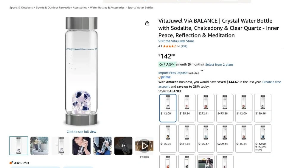 NEW - VitaJuwel Balance Crystal Glass Water Bottle