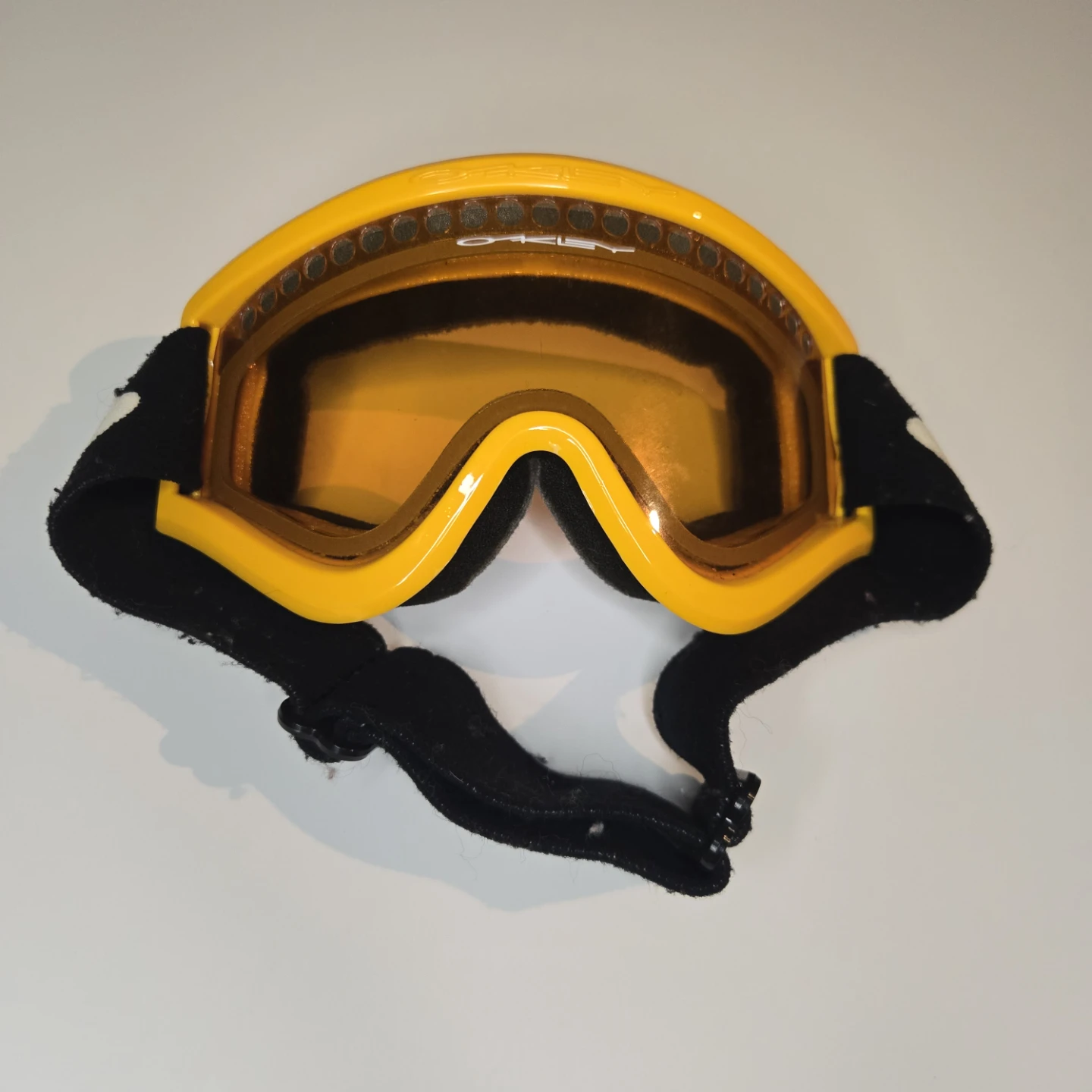 Selling a pair of Oakley ski/snowboard goggles. They have a yellow frame and black strap. Great for hitting the slopes!