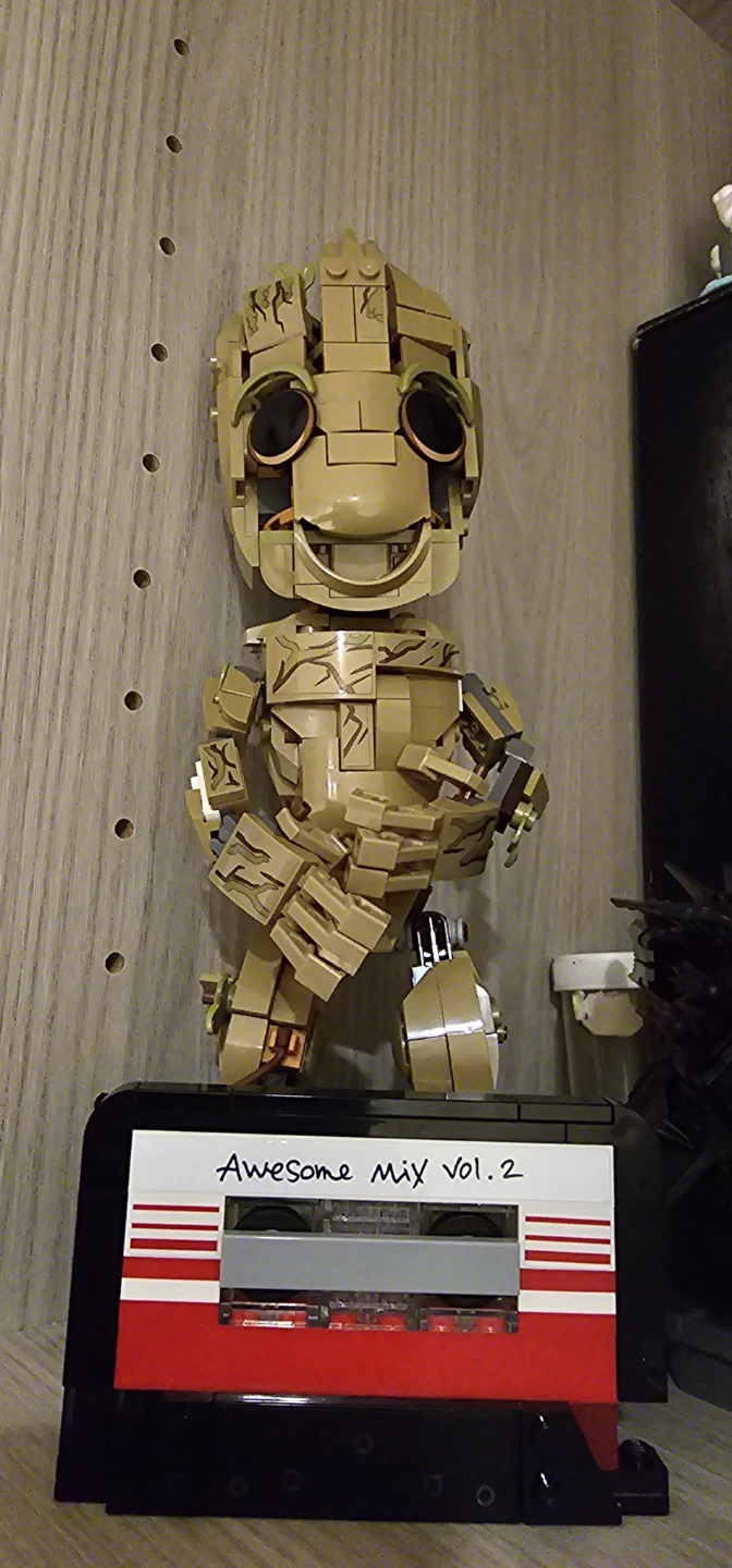 Selling a LEGO Marvel Groot figure! This set has 476 pieces and is a fun build for any Marvel fan. The figure is in great condition and ready for a new home! Comes with his mix tape and plaque that says his age and stuff will trade for horror collectibles