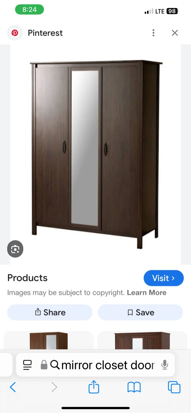 Selling a wardrobe with a mirror door. It's in great shape and ready for a new home! Please NOTE you need delivery you can count on wardrobe with a 3 set section/mirror in the middle thanks the best over good luck .