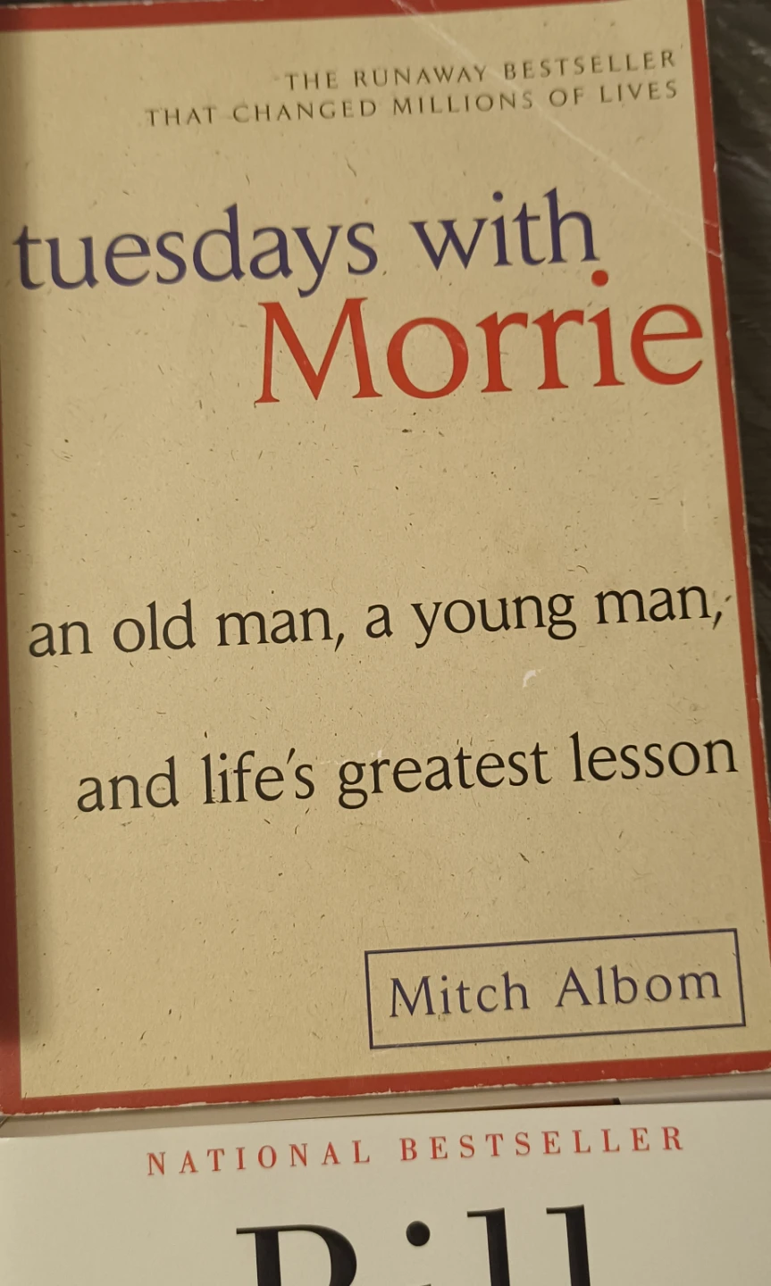 Selling a copy of "Tuesdays with Morrie" by Mitch Albom! It's a runaway bestseller that has changed millions of lives. This book tells the story of an old man, a young man, and life's greatest lesson