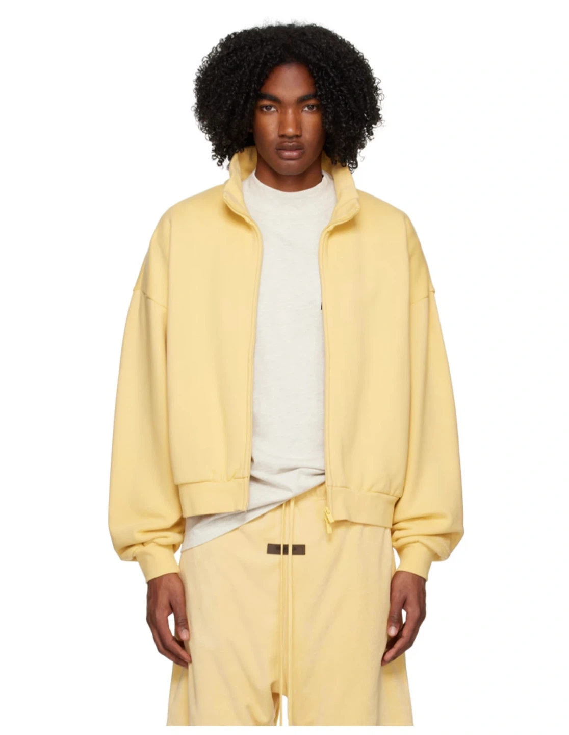 Selling a Fear of God Essentials track jacket in a lovely yellow colour! It's in great condition and would be a great addition to your wardrobe. The material is soft and comfortable, perfect for layering or wearing on its own. Feel free to message me with any questions!